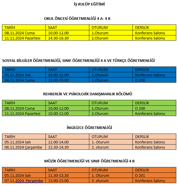 Fakültemizde Aydın Çalışma ve İş Kurumu tarafından 4. sınıf öğrencilerimize verilecek olan İş Kulübü Eğitimi Programı aşağıdadır.