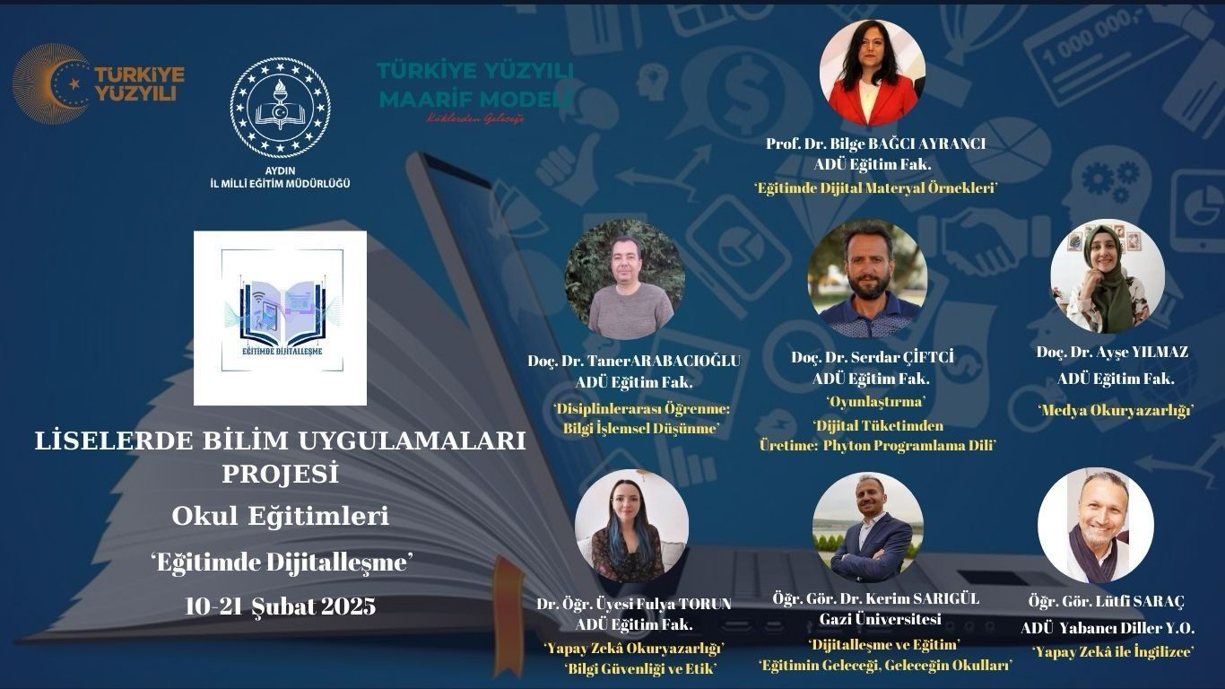 Milli EÄŸitim Bakanlığı OrtaöÄŸretim Genel MüdürlüÄŸü’ne baÄŸlı fen liseleri ve merkezi sınavla öÄŸrenci alan Anadolu liselerinde, Türkiye Yüzyılı Maarif Modeli kapsamında bütüncül bir yaklaşımla ulusal ve uluslararası ölçütlerde bilgi, beceri, tutum ve davranış kazandırılması amacıyla baÅŸlatılan “Liselerde Bilim Uygulamaları Projesi” kapsamında, Aydın İl Milli EÄŸitim MüdürlüÄŸü ile Aydın Adnan Menderes Üniversitesi arasında imzalanan çerçeve protokol doÄŸrultusunda okul eÄŸitimleri baÅŸlamıştır.