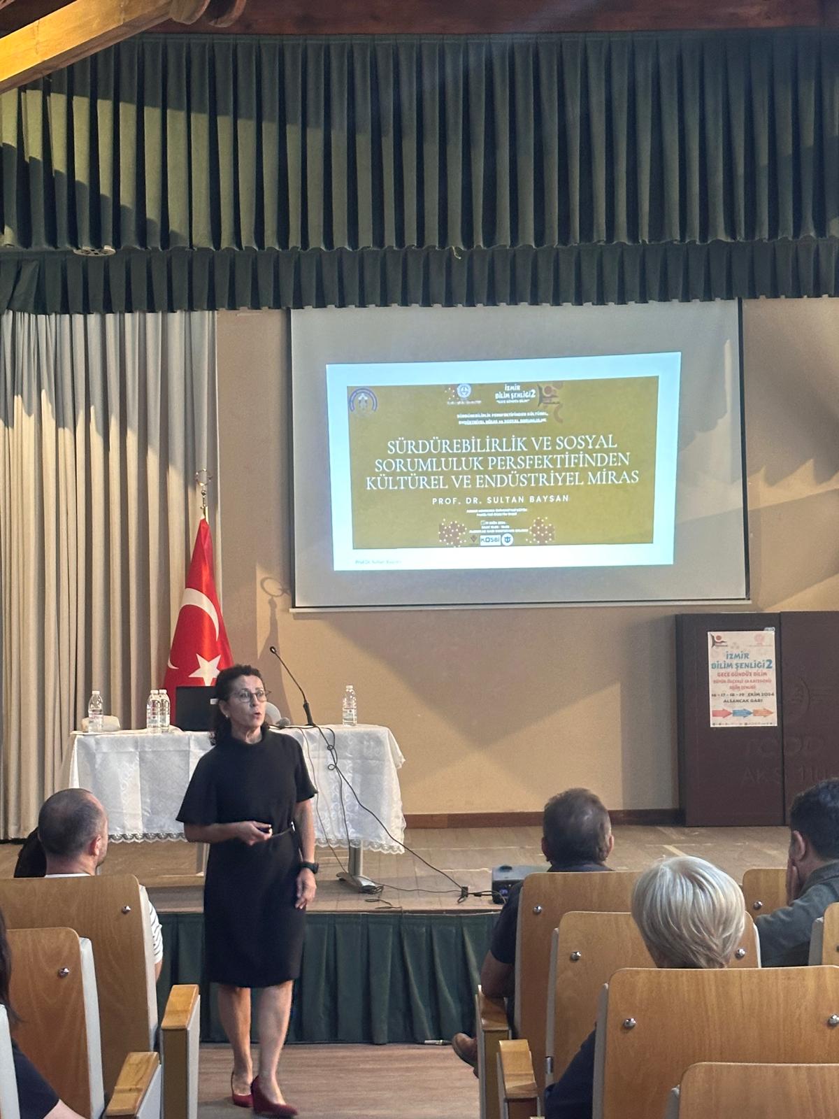 Sunumunda somut ve somut olmayan kültürel miras kavramlarını açıklayan Prof. Dr. BAYSAN, dünyadan ve Türkiye'den çeşitli örnekler sundu. Uluslararası camiadaki iyi uygulamaların yanı sıra, İstanbul, İzmir ve Aydın'dan yerel örnekler vererek konuyu zenginleştirdi. Bu alanda yapılan birçok bilimsel çalışmaya da değinen BAYSAN, kültürel ve endüstriyel mirasın korunması ve gelecek nesillere aktarılmasının önemini vurguladı. Prof. Dr. BAYSAN'ın sunumu, bu hedefler doğrultusunda öğretmenlere yeni perspektifler sunarak, onların öğrencilerini geleceğe hazırlamalarına katkıda bulundu.