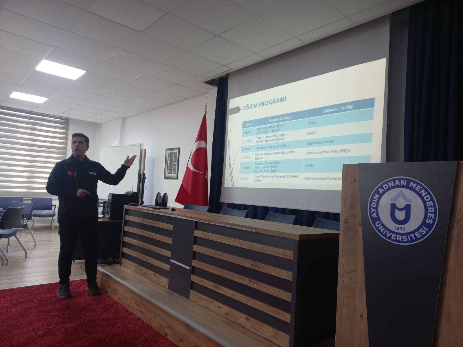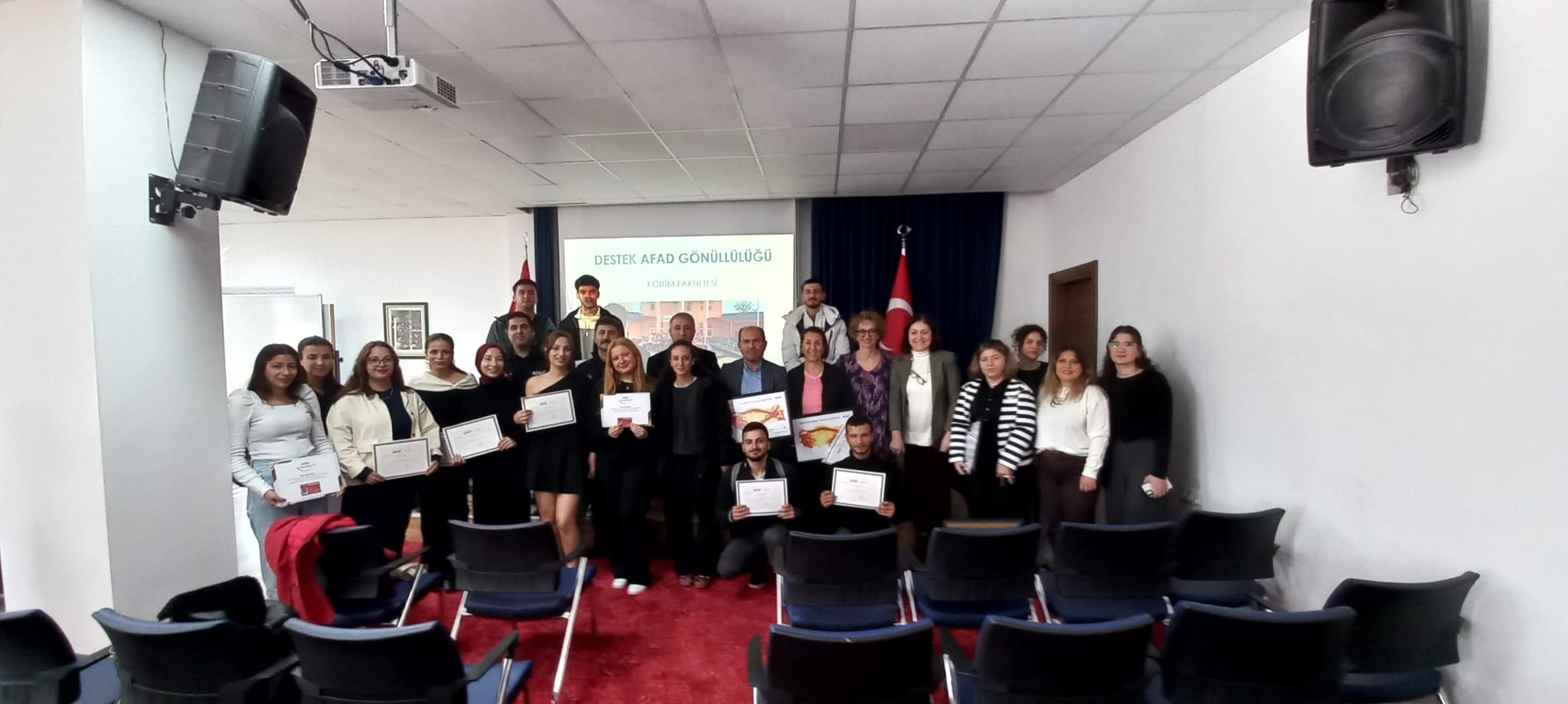 Aydın İl Afet ve Acil Durum Müdürlüğü iş birliğiyle, Eğitim Fakültesi öğrencilerine yönelik olarak yürütülen *AFAD Gönüllülük Eğitimi Programı* başarıyla tamamlandı. Nisan–Mayıs aylarını kapsayan ve 6 hafta süren eğitim sürecine Eğitim Fakültesi öğrencileri yoğun katılım gösterdi.