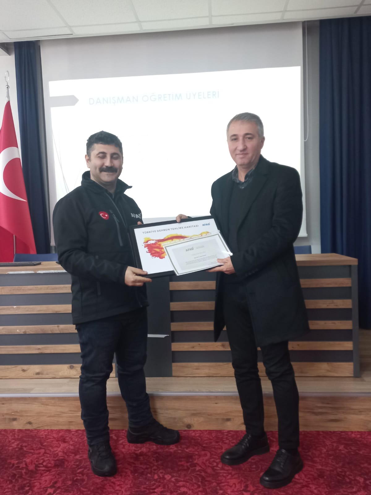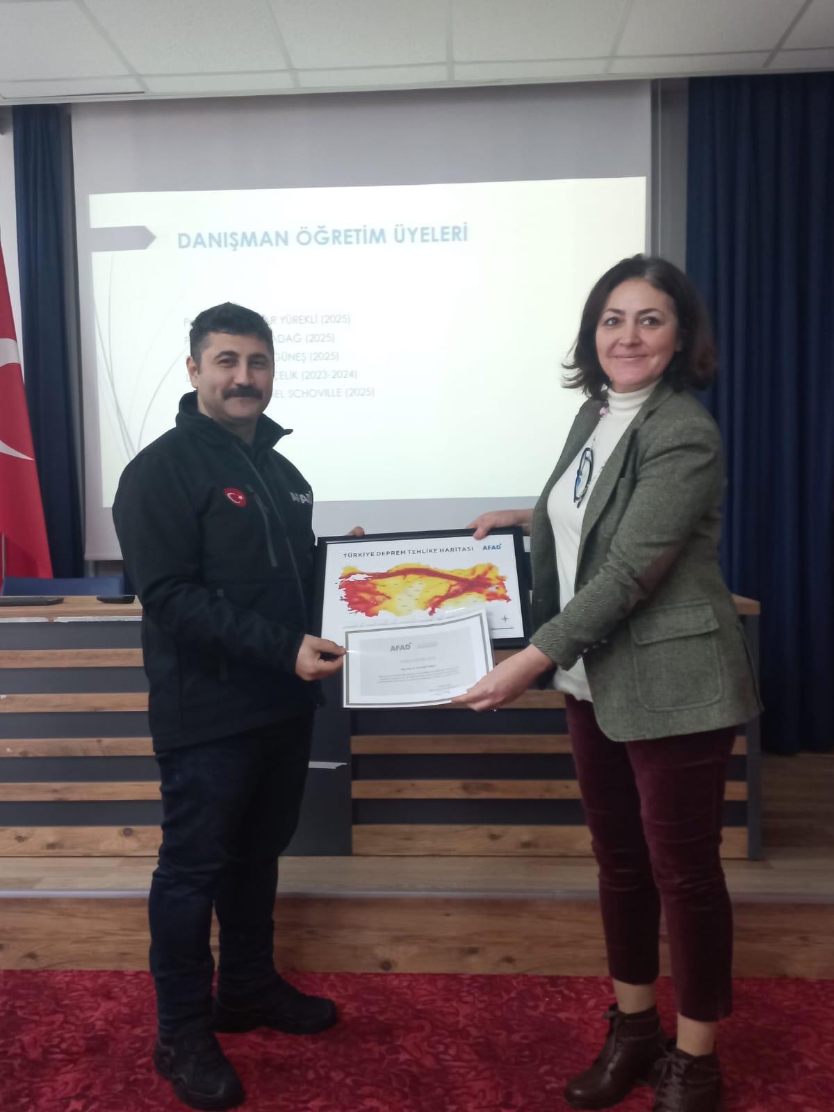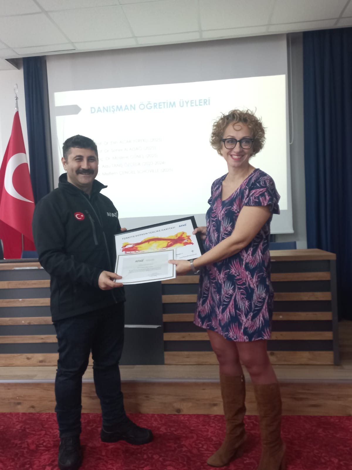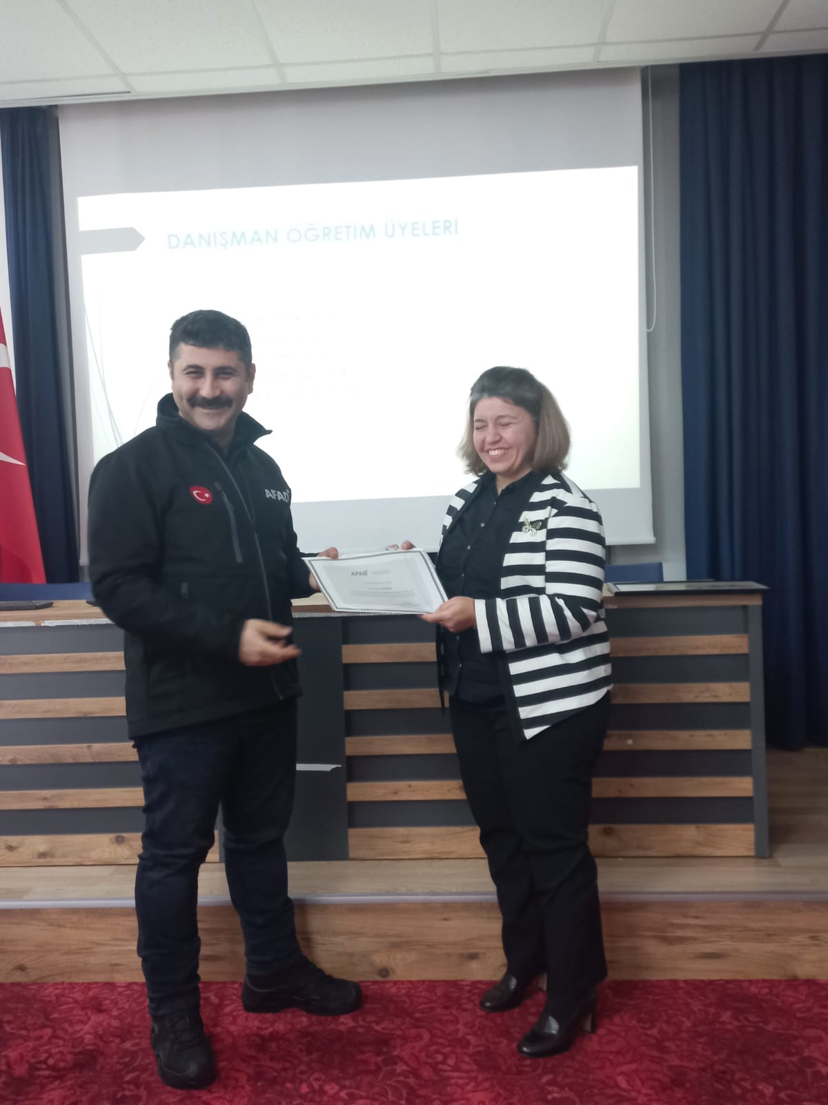 Program kapsamında düzenlenen törene, Aydın İl Afet ve Acil Durum Müdürü V. İsmail Alnak ile Eğitim Şube Müdürü Sinan Can katıldı. Eğitim sürecini tamamlayan öğrencilere, 24 Aralık 2025 tarihinde fakültemiz konferans salonunda düzenlenen törenle AFAD Gönüllüsü Kimlik Kartları takdim edildi.
