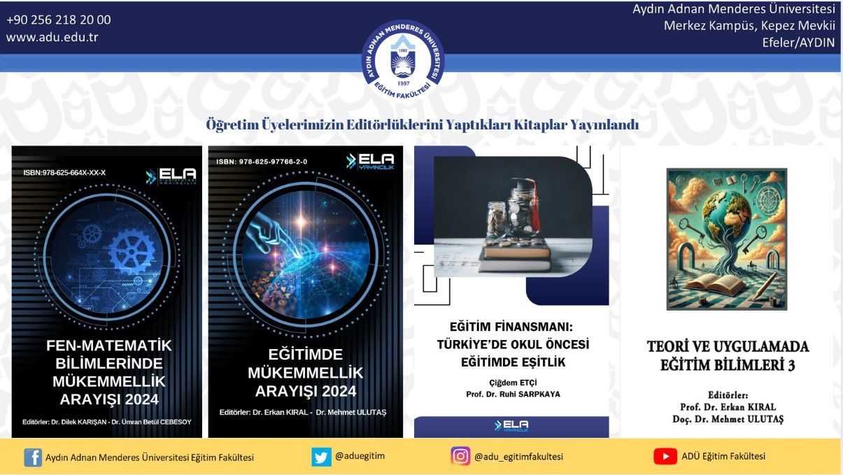 - Fakültemiz öğretim üyelerinden Prof. Dr. Erkan KIRAL ve Doç. Dr. Mehmet ULUTAŞ’ın editörlüğünde “Eğitimde Mükemmel Arayışı” kitabı,