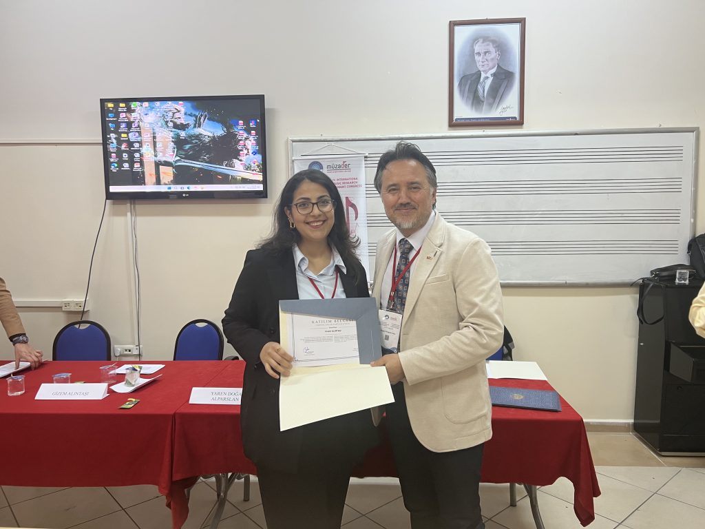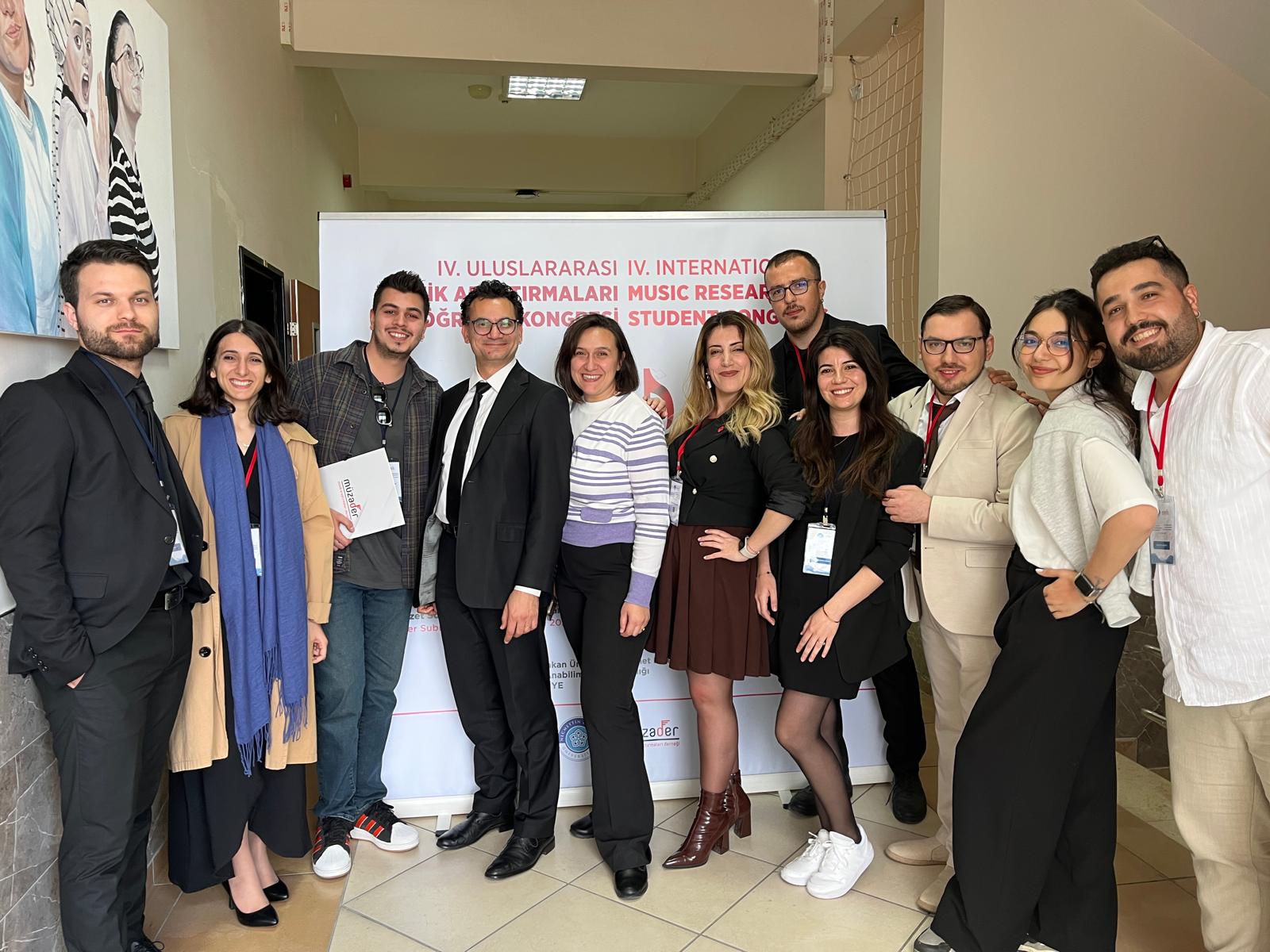 Fakültemiz Güzel Sanatlar Eğitimi Bölümü Müzik Eğitimi Anabilim Dalı öğretim üyelerimizden Prof. Dr. Onur Topoğlu ve Doç. Dr. Evin Erden Topoğlu, bilim kurulu üyesi ve araştırmacı olarak öğrencileriyle birlikte 24-26 Nisan 2025 tarihleri arasında Konya’da düzenlenen IV. Uluslararası Müzik Araştırmaları Öğrenci Kongresi’ne katıldı. Kongrede 1 lisans, 11 yüksek lisans öğrencimiz toplam 14 sözlü bildiri ile yer aldı.