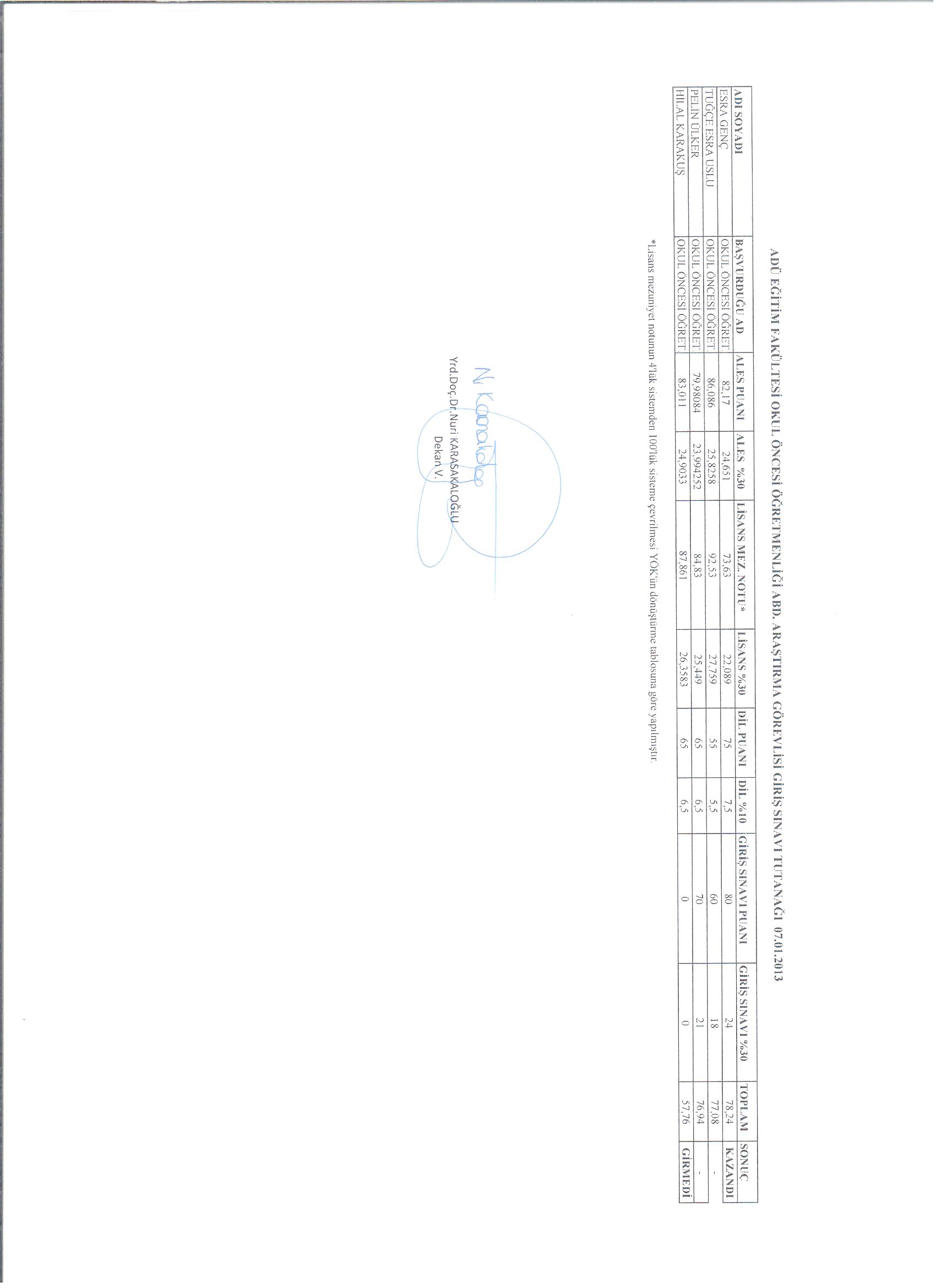 OKULÖNCESİ EĞİTİMİ ANABİLİM DALI ARAŞTIRMA GÖREVLİLİĞİ GİRİŞ SINAVI SONUCU