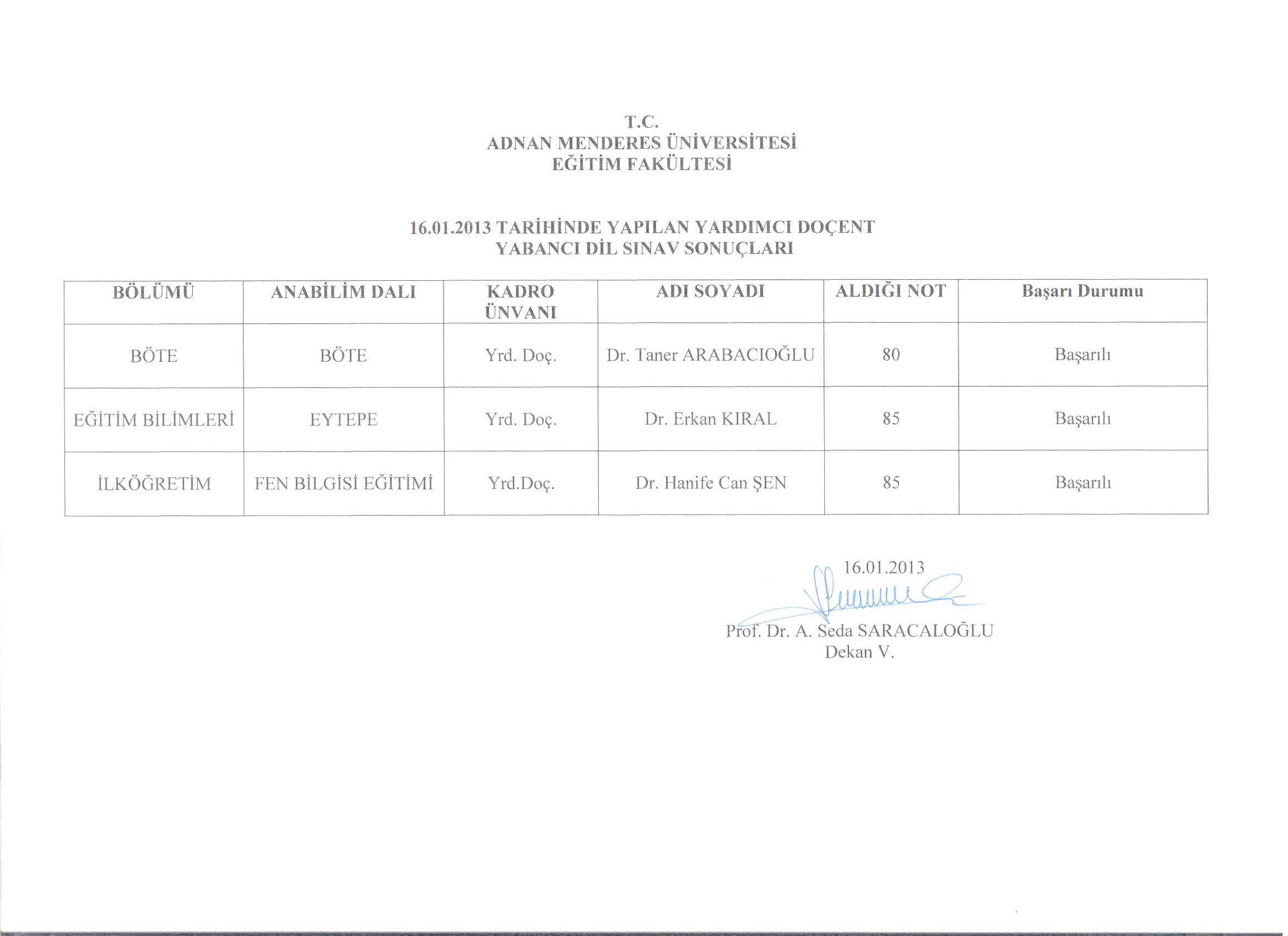 Yardımcı Doçent Yabancı Dil Sınav Sonucu