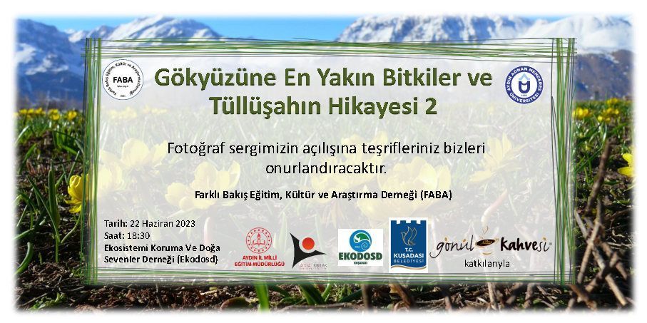 “Gökyüzüne En Yakın Bitkiler ve TüllüÅŸahın Hikayesi “ baÅŸlıklı sergimiz üniversitemiz öÄŸretim üyesi Prof. Dr. Mesut KIRMACI tarafından kurulmuÅŸ Farklı Bakış (FABA) eÄŸitim, Kültür ve araÅŸtırma derneÄŸinin ve üniversitemizin ortak bir etkinliÄŸi olarak gerçekleÅŸtirilecektir. Sergide ülkemizin farklı bölgelerinde gerçekleÅŸtirilen araÅŸtırmalar ve doÄŸa gezilerinden elde edilen fotoÄŸraflar hikâyeleri ile birlikte sunulmuÅŸtur. Resimlerin tamamı Prof. Dr. Mesut KIRMACI ve Doç. Dr. Metin ARMAÄžAN (Necmettin Erbakan Üniversitesi) tarafından çekilmiÅŸtir. Serginin amacı yaklaşık 12.000 bitki taksonuna sahip ülkemizin bitki zenginliÄŸini tanıtmak ve farkındalık oluÅŸturmak adına planlanmıştır. Sergide Aydın’ın simge bitkilerinden biri haline gelen “TüllüÅŸah’a (Aydın GaÅŸağı) özel bir yer verilmiÅŸ, bitkinin tanıtımı ve korunmasına katkı saÄŸlamak hedeflenmiÅŸtir. Neredeyse tamamı cep telefonu ile çekilen fotoÄŸraflarla, ülkemiz yurttaÅŸ bilginlerine her an yanlarında bulunan telefonları ile doÄŸa, özellikle de bitki fotoÄŸrafçılığı yapabilecekleri bu sayede farklı bir hobi edinebilecekleri gösterilmeye çalışılmıştır. Ülkemizin bitki zenginliÄŸi ve TüllüÅŸahın tanıtılması adına TUBİTAK DoÄŸa ve Bilim Okulları tarafından 3 dönem desteklenen “ZenginliÄŸe Farklı Bakış, Endemik Bitkilerimiz ve TüllüÅŸahın Hikayesi” baÅŸlıklı proje (Proje yürütücüsü: Dr. ÖÄŸr. Üyesi sayın Mithat Evrim DEMİR) kapsamında Aydın ili nitelikli okullarında öÄŸretim gören yaklaşık 140 öÄŸrenciye eÄŸitim verilmiÅŸ, bu kapsamda TüllüÅŸahın resmi öÄŸrenciler tarafından ÖÄŸretmen AyÅŸe ÇUMAN (MEB) önderliÄŸinde hazırlanmış, sözleri Prof. Dr. Mesut KIRMACI tarafından yazılan TüllüÅŸahın türküsü, ÖÄŸretmen Arif BALYEMEZ (MEB) tarafından bestelenmiÅŸtir. Bu anlamda ülkemiz biliminin geliÅŸmesine önemli katkılar saÄŸlayan TUBİTAK ve Aydın Milli EÄŸitim MüdürlüÄŸü önemli paydaÅŸlarımız arasındadır. Yine proje esnasında yardımlarını esirgemeyen KUÅžADASI Belediyesi ile bu serginin düzenlenmesine olanak saÄŸlayan, Aydın’ın doÄŸanın korunmasında en etkin katkıyı saÄŸlayan sivil toplum kuruluÅŸu Ekodosd (Ekosistemi Koruma Ve DoÄŸa Sevenler DerneÄŸi) diÄŸer paydaÅŸlarımızdır. Serginin hazırlanmasına Buharkent MYO öÄŸretim elemanlarından Dr. ÖÄŸr. Üyesi sayın Mithat Evrim DEMİR ve ÖÄŸr. Gör. Dr. Sayın Gözde ASLAN önemli katkılar saÄŸlamışlardır.