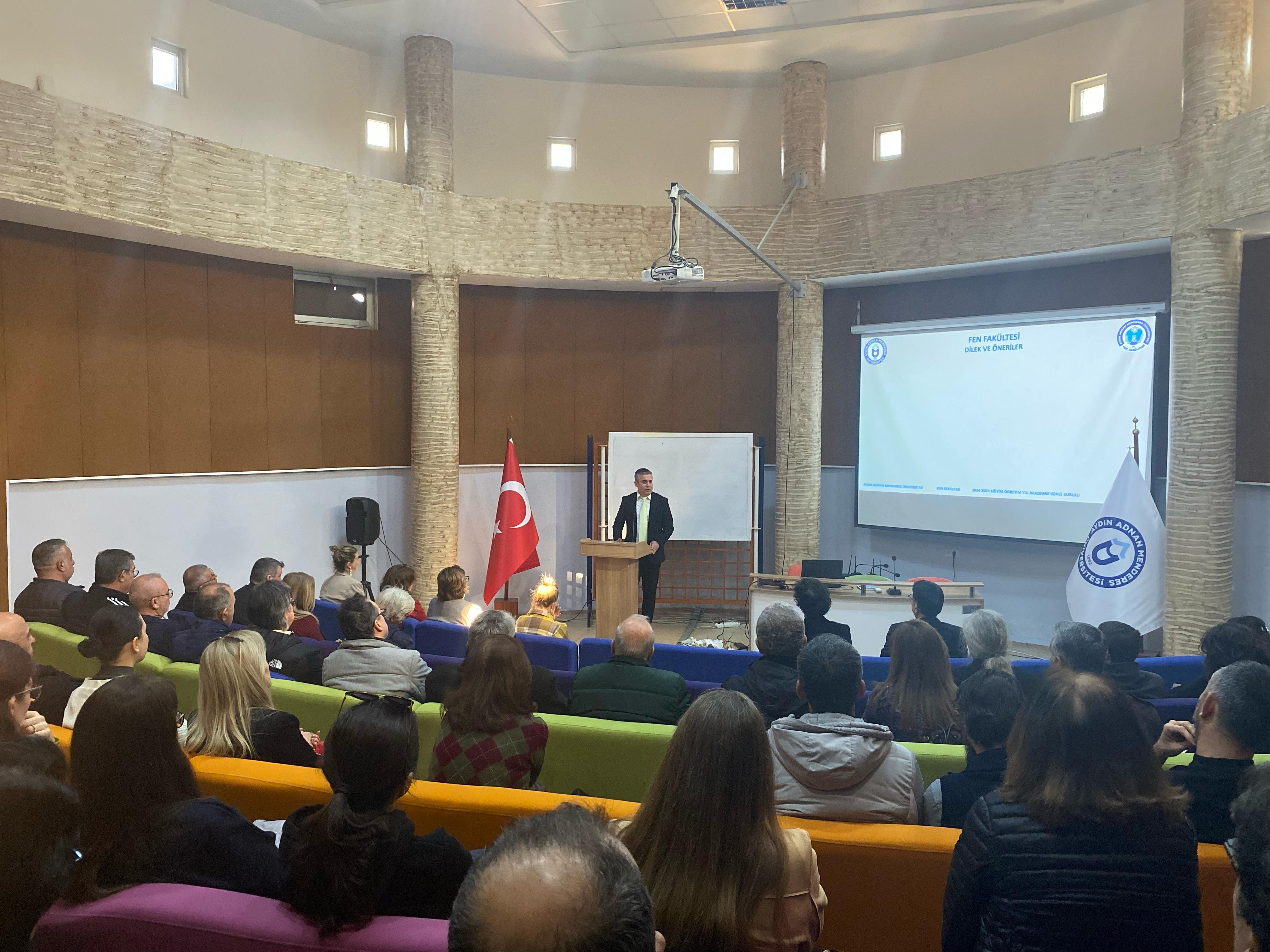 Fakültemiz Akademik Kurulu toplantımız 21 Åžubat 2025 tarihinde Rektör Yardımcımız Prof. Dr. Erkan Salan’nın da katılımları ile AİSYEM salonunda gerçekleÅŸtirildi. Dekanımız Prof. Dr. Aytaç Gürhan Gökçe sunumunda Fen Fakültesi’nin 2024-2025 yılı akademik ve idari faaliyetleri hakkında bilgi verdi ve fakültemizin ihtiyaçlarından bahsetti. Rektör Yardımcımız Prof. Dr. Erkan Salan yapmış olduÄŸu konuÅŸmada, çalışmalarından dolayı akademik ve idari personele teÅŸekkür ederek, üniversitemizin baÅŸarısının artması için elbirliÄŸi le çalıştıklarından bahsetti. Akademik Kurul Toplantısı, fakültemiz personelinin görüÅŸ ve önerilerinin alınması ile sona erdi.