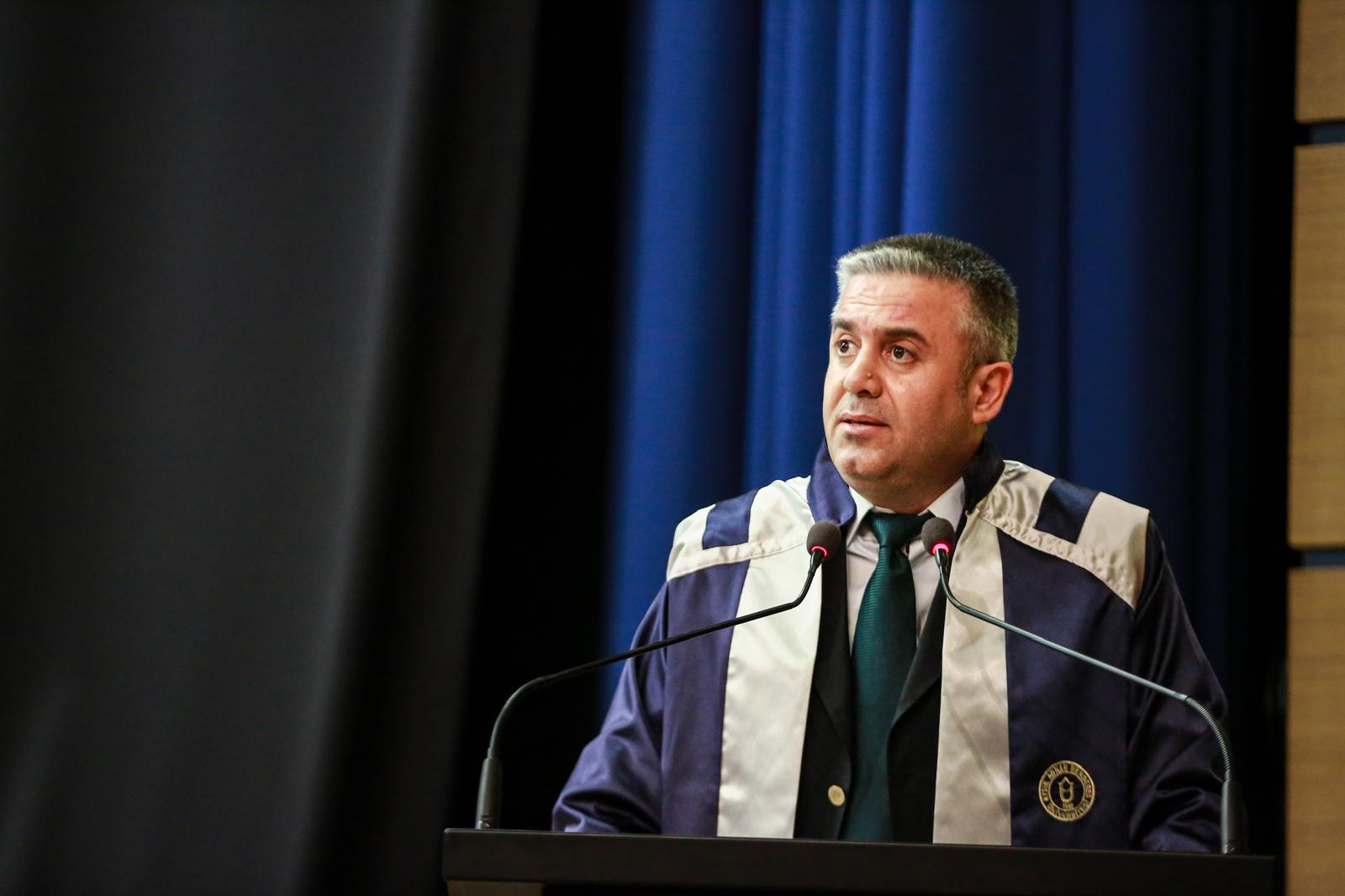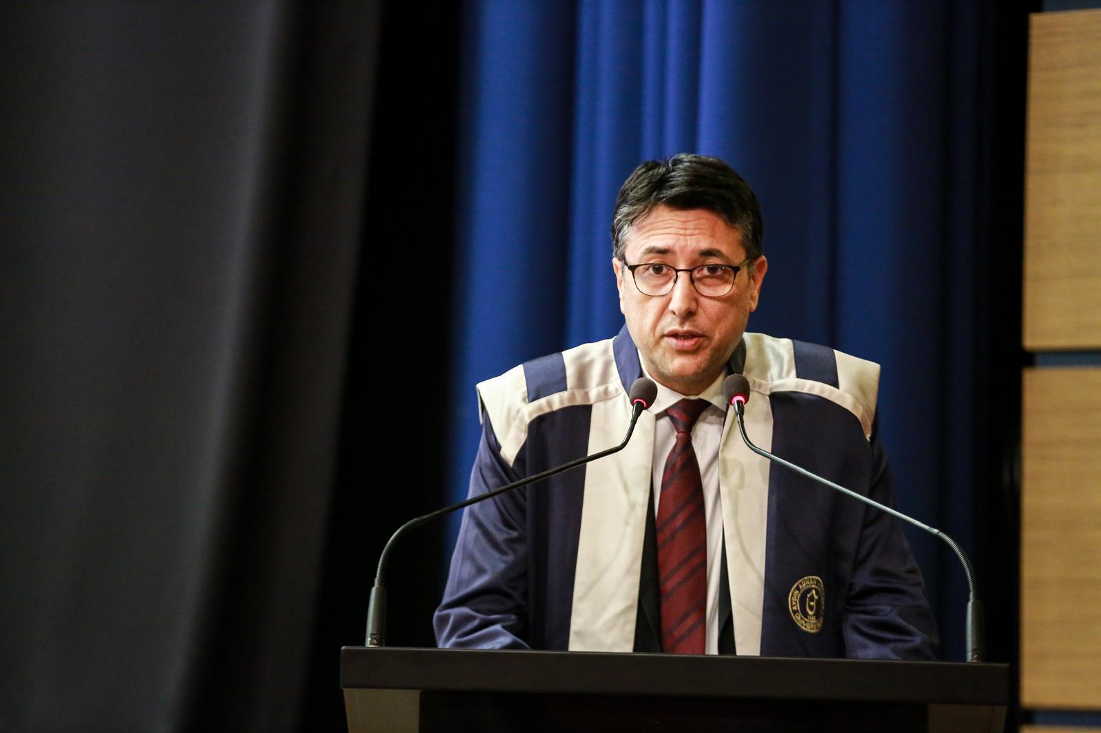 Gençlere, öğrenmenin hayat boyu devam eden bir süreç olduğu bilinciyle daima yeniliğe ve gelişime açık olmaları gerektiğini söyleyen Rektör Yardımcısı Prof. Dr. Erkan Salan, “Unutmayınız ki başarı, tesadüflerle değil; kararlılıkla, azimle ve sabırla inşa edilir. Hayatınız boyunca karşılaşacağınız zorlukları, burada edindiğiniz birikim ve kazanımlarla aşacağınıza inanıyoruz. Dürüstlükten, çalışkanlıktan ve insanlığa hizmet idealinden hiçbir zaman vazgeçmeyin. Bu vesileyle, sizlerin bugünlere ulaşmasında büyük pay sahibi olan kıymetli hocalarımıza teşekkür ediyorum. Onlar, sadece bilgi aktarmakla kalmadılar; aynı zamanda sizlere düşünmeyi, sorgulamayı ve öğrenmeyi öğrettiler. Aynı şekilde, her adımda yanınızda olan, sizi sabırla destekleyen ve yüreklendiren değerli ailelerinize de en içten şükranlarımı sunuyorum. Verdikleri emek ve gösterdikleri sabır, bu başarının en önemli parçalarındandır.” dedi.