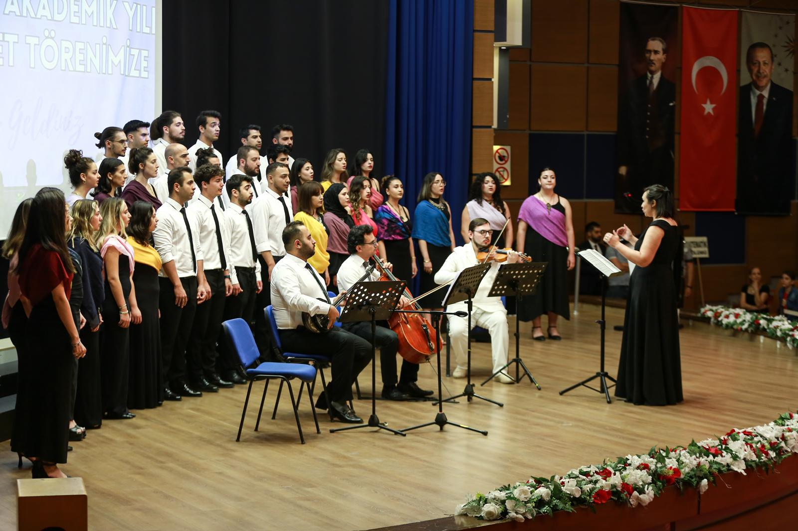 Saygı Duruşu ve İstiklal Marşı’nın okunmasının ardından Üniversitemiz Çoksesli Korosu tarafından sergilenen müzik dinletisi yoğun ilgiyle karşılandı.