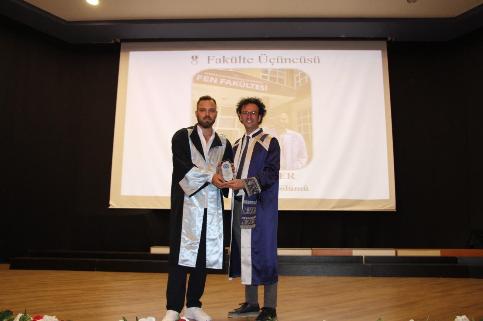 Öğrencilerin mezuniyetlerini Türkiye'nin en prestijli üniversitelerinden birinin parçası olmanın gururuyla kutladığını belirten Dekanımız Prof. Dr. Aytaç Gürhan Gökçe, “Sizler her biriniz bu fakülteden mezun olmayı ve hayalinizdeki mesleğe girmeyi sonuna kadar hak ediyorsunuz. Üniversite hayatının sadece eğitimle sınırlı olmadığını, kazandığınız vizyon ve değerlerinde, bu eğitimin ayrı bir parçası olduğunu unutmamanız gerekir. İşte bu yüzden Aydın Adnan Menderes Üniversitesinde olmak sizi ayrıcalıklı kılar. Aydın Adnan Menderes Üniversitesini tercih ederken, kapısından girdiğiniz andan itibaren farklılığı hissettiğiniz o ilk günün heyecanı ile bugünkü son günün heyecanı hatırınızda kalacak ve bu heyecanı hayatınızın sonuna kadar hissedeceksiniz.” dedi.