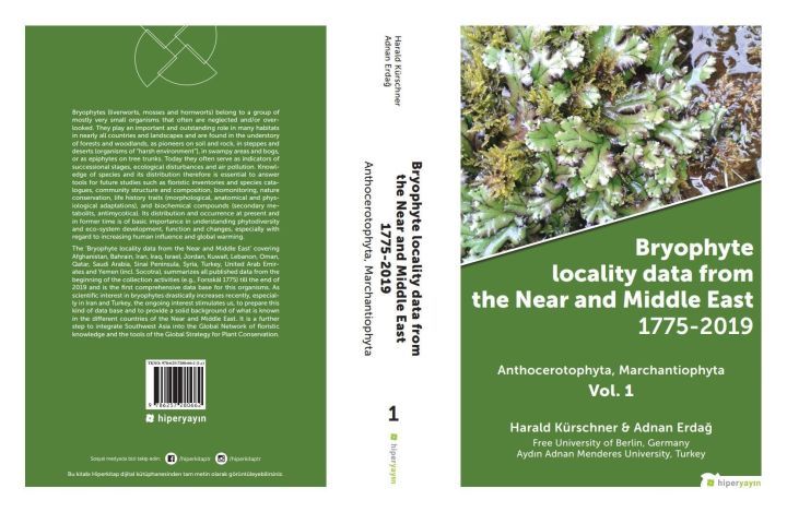 Fen Fakültesi Biyoloji Bölümü öğretim üyesi Prof. Dr. Adnan Erdağ ve Alman botanikçi Prof. Dr. Harald Kürschner tarafından hazırlanan “Bryophyte Locality Data From The Near And Middle East, 1775-2020” başlıklı 6 ciltlik eserin 1. cildi “Marchantiophyta-Anthocerotophyta” Hiperlink Yayınevi tarafından 2020 yılının son günlerinde yayımlanmıştır. Eser 902 sayfa olup, Türkiye, İran, Afganistan, tüm Arap yarımadası ülkeleri (levant ülkeleri ve Sokotra adası dahil) ile Sina yarımadasından 1775 yılından 2020 yılına kadar yayımlanmış tüm biryofit (1. cilt ciğerotları ile Boynuzluotları içermektedir) kayıtlarını vilayetler bazında bildirmekte ve kayıtlara ilişkin coğrafi konum bilgileri, lokaliteleri, yayımlandığı çalışmaları detaylı bir künye halinde sıralarken, her biryofit taksonu için ayrı yayılış haritalarını sunmaktadır.