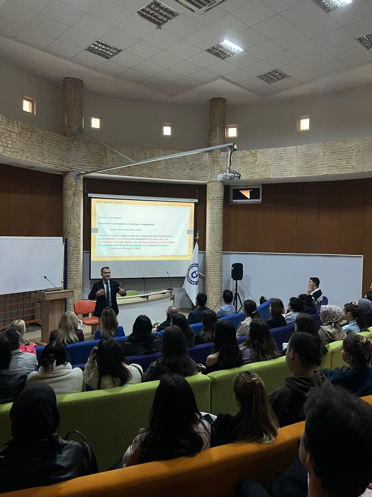 11 Kasım 2025 tarihinde düzenlenen “Kimya Bölümü Kariyer EtkinliÄŸi” kapsamında, Ege Üniversitesi Kimya MühendisliÄŸi Bölümü öÄŸretim üyesi Prof. Dr. Serdal TEMEL, öÄŸrencilerimizle bir araya gelerek kariyer planlama ve bilimsel çıktıları inovasyona ve ürüne dönüÅŸtürme konularında ilham verici bir sunum gerçekleÅŸtirmiÅŸtir. Prof. Dr. Serdal TEMEL’in paylaÅŸmış olduÄŸu deÄŸerli bilgi ve deneyimler, öÄŸrencilerimiz için hem akademik hem de profesyonel açıdan ufuk açıcı olmuÅŸtur.