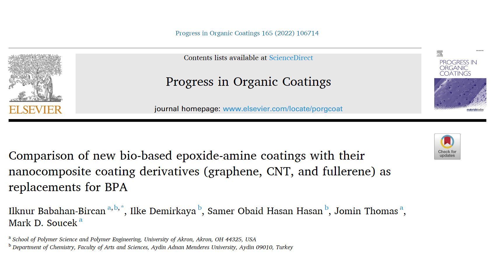 2022 yılında Kimya bölüm birincisi olarak mezun olan ve halen Kimya bölümünde yüksek lisans yapan İlke DEMİRKAYA adlı öğrencimizin lisans bitirme tezi olarak yaptığı çalışma, SCI kapsamında ve Q1 sınıfında yer alan, “Progress in Organic Coatings” adlı etki değeri 6.2 olan bilimsel bir dergide araştırma makalesi olarak yayımlanmıştır.