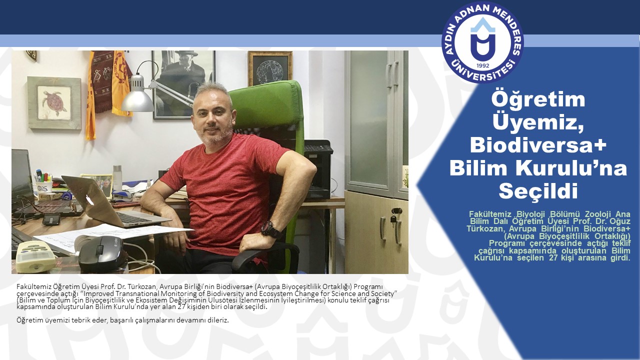 Öğretim Üyesmiz Prof. Dr. Türkozan, Avrupa Birliği’nin Biodiversa+ (Avrupa Biyoçeşitlilik Ortaklığı) Programı çerçevesinde açtığı “Improved Transnational Monitoring of Biodiversity and Ecosystem Change for Science and Society” (Bilim ve Toplum İçin Biyoçeşitlilik ve Ekosistem Değişiminin Ulusötesi İzlenmesinin İyileştirilmesi) konulu teklif çağrısı kapsamında oluşturulan Bilim Kurulu’nda yer alan 27 kişiden biri olarak seçildi.