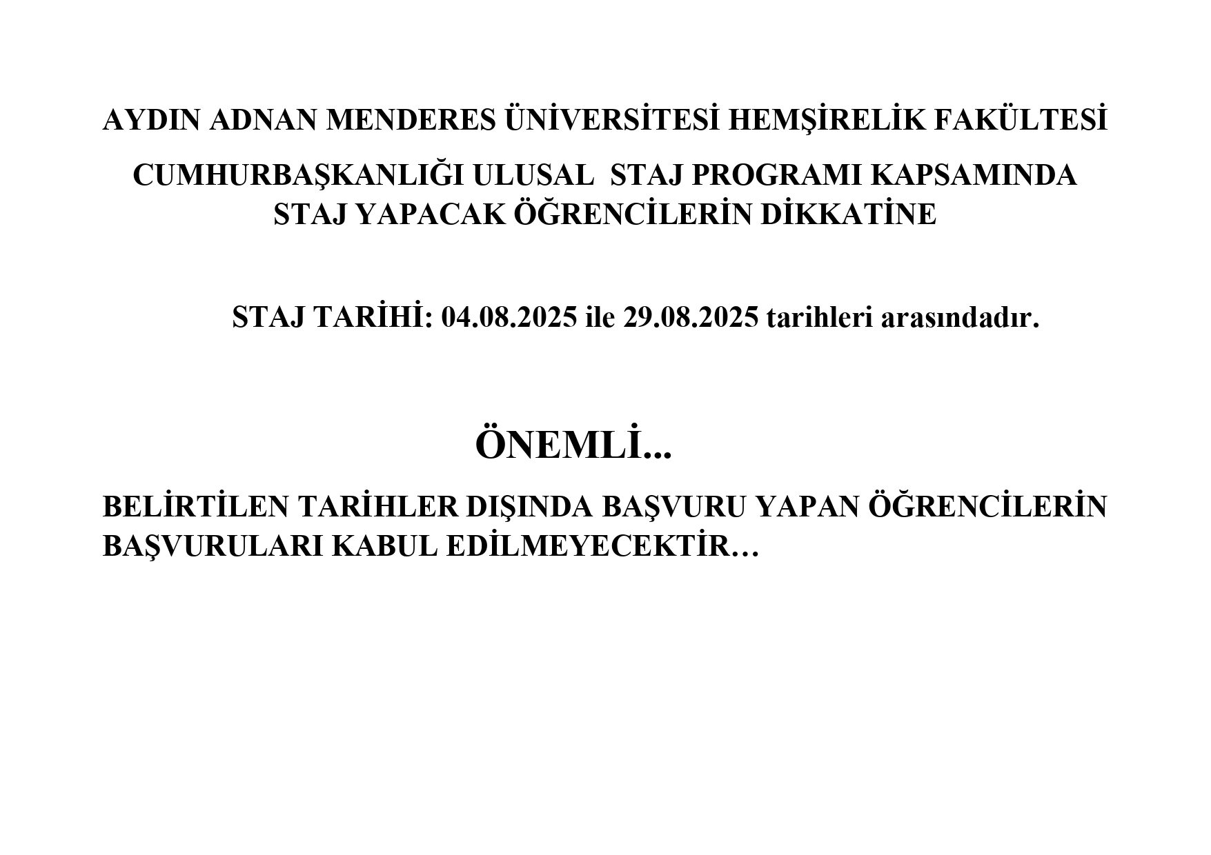 Cumhurbaşkanlığı Ulusal Staj Programı Kapsamında Staj Yapacak Öğrencilerin Dikkatine