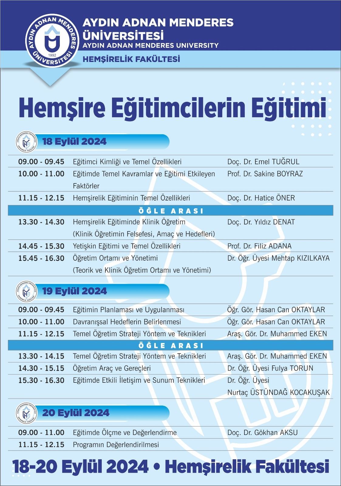 Fakültemiz Bilimsel Etkinlik ve Sürekli EÄŸitim Komisyonu tarafından hazırlanan ve 18-20 Eylül 2024 tarihleri arasında Fakültemizde düzenlenecek olan "HemÅŸire EÄŸitimcilerinin EÄŸitimi" konulu etkinliÄŸin afiÅŸi için buraya tıklayınız.