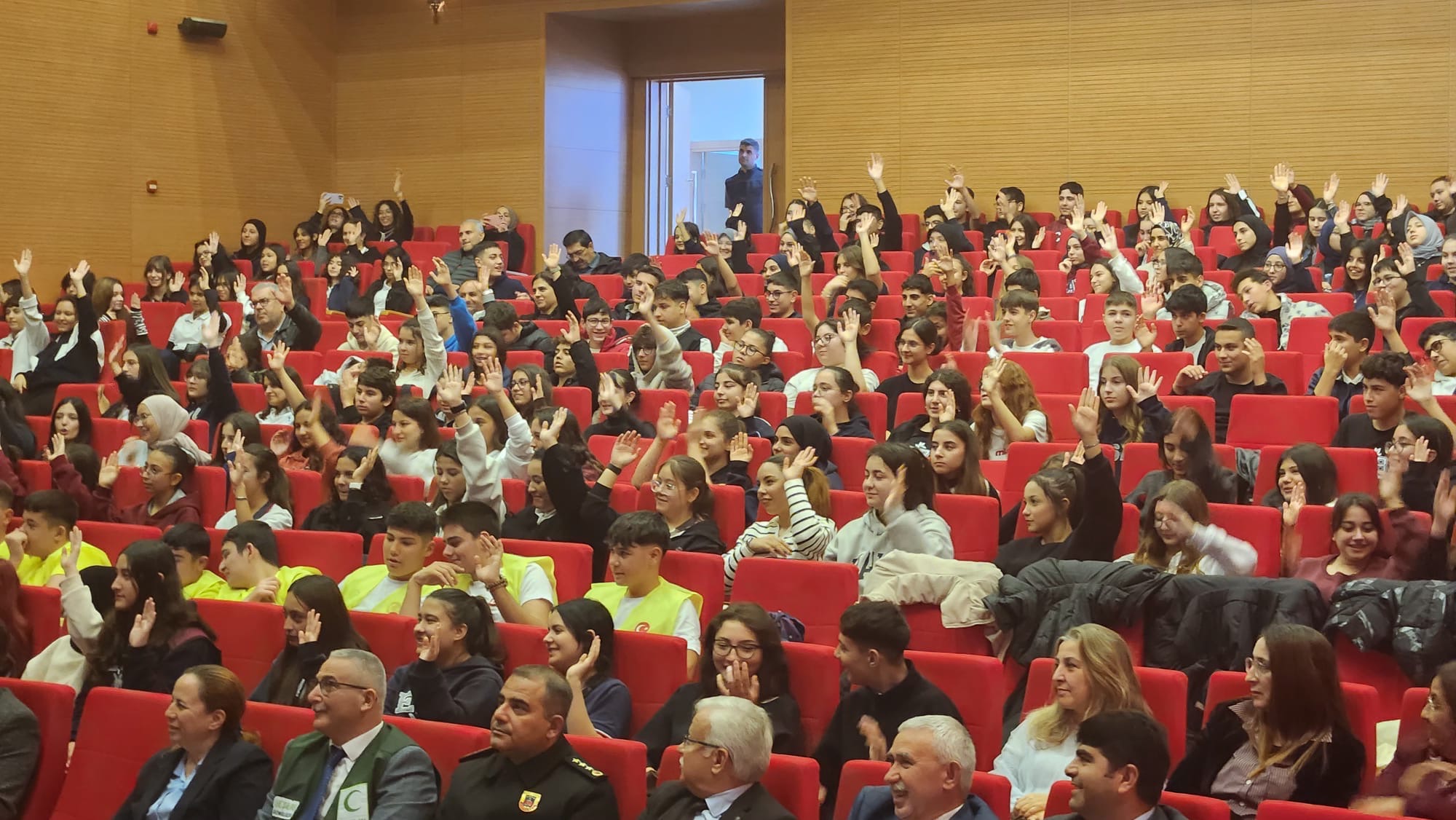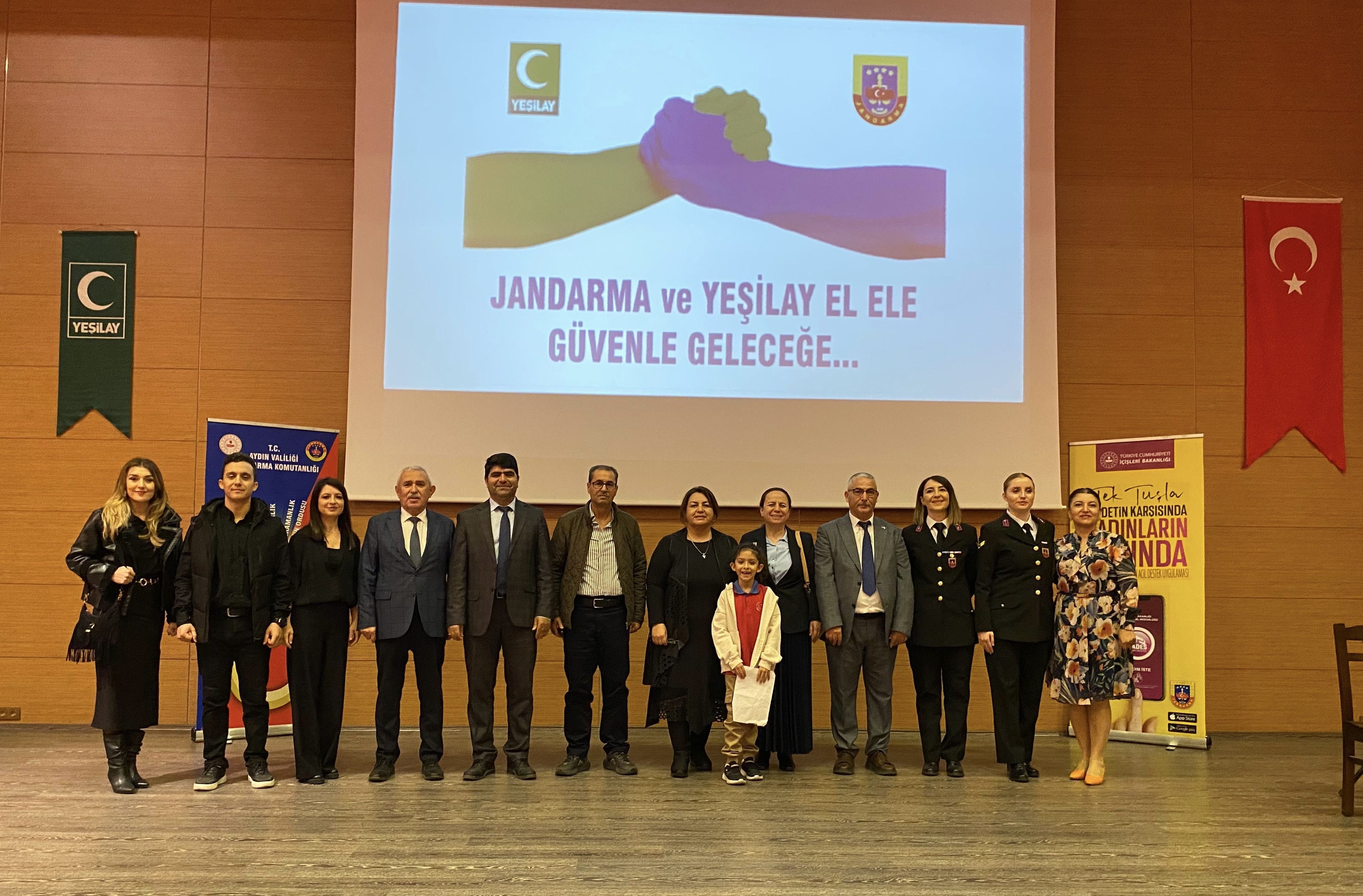 Aydın İl Jandarma Komutanlığı, Aydın YEŞİLAY Şubesi, Aydın İl Milli Eğitim Müdürlüğü ve Aydın Adnan Menderes Üniversitesi iş birliğiyle ile 20 Kasım 2025 tarihinde Aydın İl Müftülüğü Konferans Salonunda Orta Öğretim öğrencilerine yönelik “Şiddetsiz ve Bağımsız Bir Gelecek İçin El Ele” başlıklı etkinlik gerçekleştirildi.