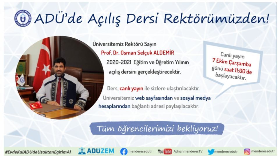 2020-2021 Eğitim ve Öğretim Yılının açılış dersini gerçekleştirecektir.