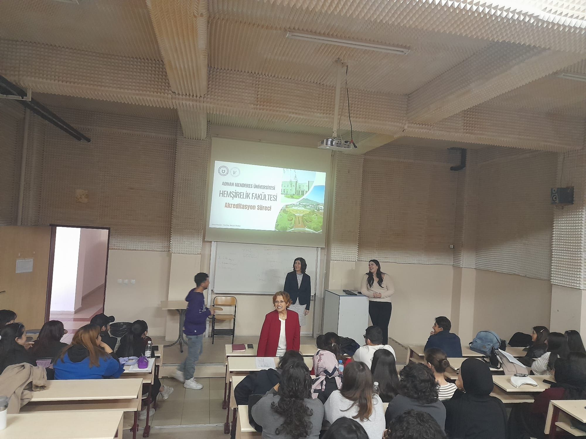 Aydın Adnan Menderes Üniversitesi HemÅŸirelik Fakültesi 1., 2., 3., 4., sınıf öÄŸrencilerine 2024-2025 Bahar Döneminde 17.03.2025 – 17.04.2025 tarihleri arasında akreditasyon süreci ile ilgili bilgilendirme toplantıları gerçekleÅŸtirildi. Toplantılara Fakülte Dekanı Prof. Dr. Hilmiye AKSU, Dekan Yardımcısı Prof. Dr. Hüsniye ÇALIÅžIR, Fakülte Sekreteri Ahmet ALKANAT, Fakülte Temsilcisi Ramazan ZİYANEK ve 4. Sınıf Temsilcisi Meliha Beyza BULUT katıldı. ÖÄŸrencilere Meliha Beyza BULUT tarafından akreditasyonun amacı ve akreditasyonun hedefleri, fakültenin misyonu, vizyonu, program amaçları ve çıktıları, akreditasyonla ilgili fakülte web sayfasında gerçekleÅŸtirilen paylaşımlar ve yenilikler hakkında bilgiler verildi. Ayrıca fakültenin koordinatörlük ve komisyonları hakkında bilgilendirmeler yapıldı