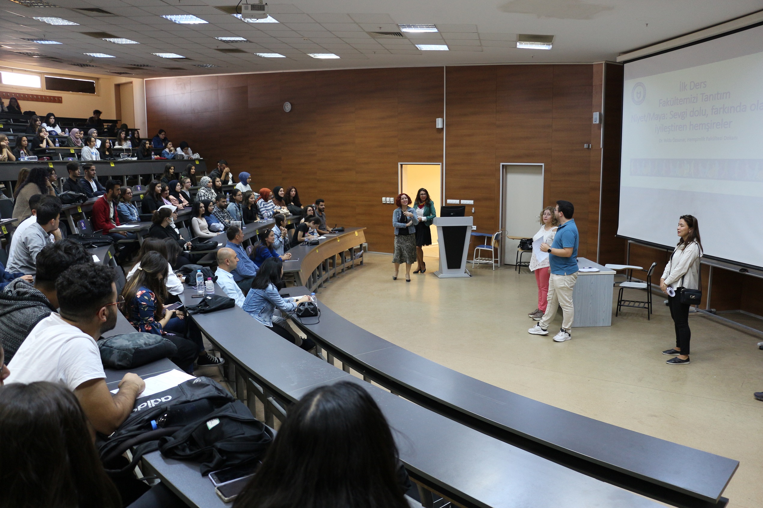 Hemşirelik birinci sınıf öğrencilerine yönelik düzenlenen oryantasyon programına Dekan Prof.Dr. Yelda Özsunar, Dekan yardımcıları Doç.Dr. Belgin Yıldırım, Dr. Öğr.Üyesi Hatice Öner ve Sağlık, Kültür ve Spor Daire Başkan V. Faruk Uludağlı, PDRM Kariyer Geliştirme Birimi’nden Kariyer Merkez Yetkilisi Sosyolog Selda Aksoy Yetkin, PDRM Psikolojik- Eğitsel Hizmetler Birimi’nden Uzm. Klinik Psikolog Fatma Evrim Güreşen ve Türkiye Çalışma ve İş Kurumu (İŞKUR), İş ve Meslek Danışmanı Gül Yıldız katılmıştır.