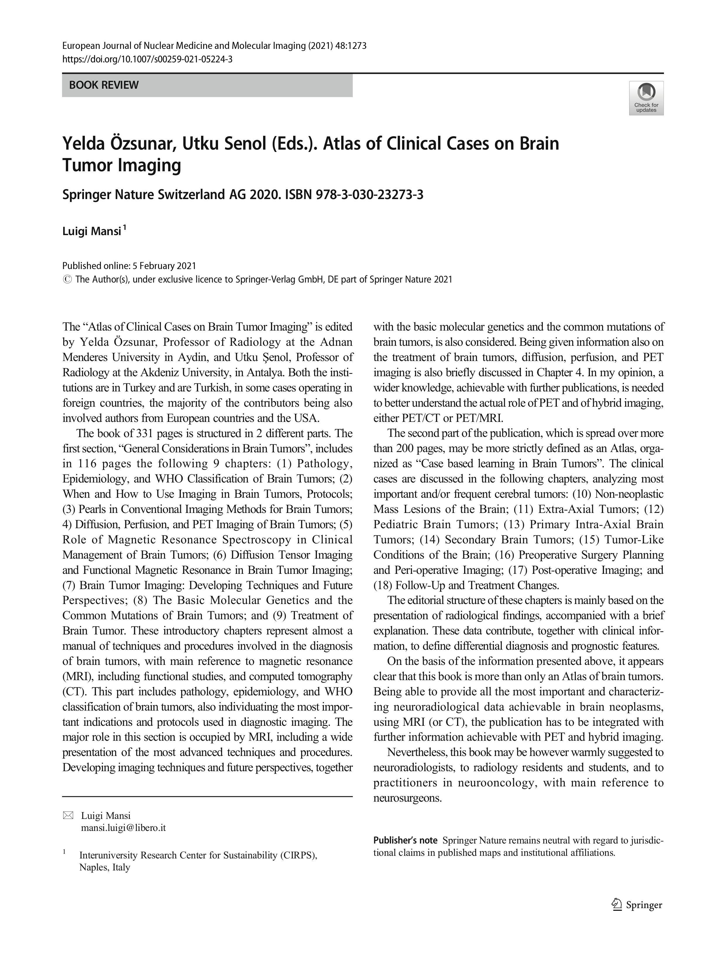 Dekanımız Prof.Dr. Yelda Özsunar’ın “Atlas of Clinical Cases on Brain Tumor Imgaing” isimli kitabının ayrıntılı yorumu, “Avrupa Nükleer Tıp ve Moleküler Biyoloji Dergisi” tarafından makale olarak, nöroradyolog ve onkologların dikkatine sunuldu. Türk bilim dünyasına yaptığı bu değerli katkısı için hocamızı tebrik ediyoruz.