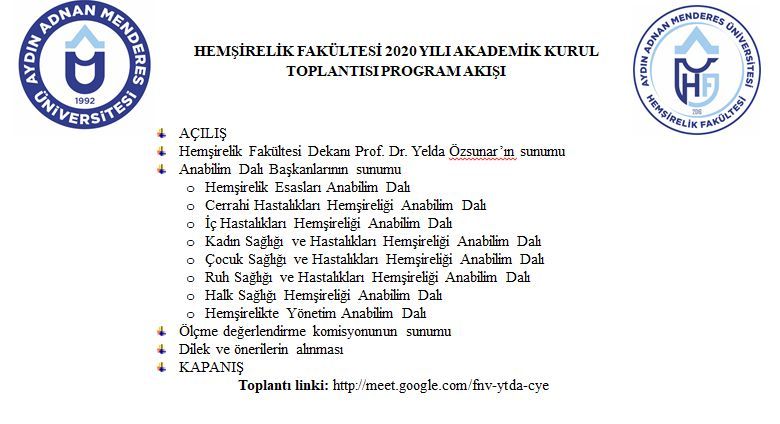 HEMŞİRELİK FAKÜLTESİ 2020 YILI AKADEMİK KURUL TOPLANTISI PROGRAM AKIŞI
