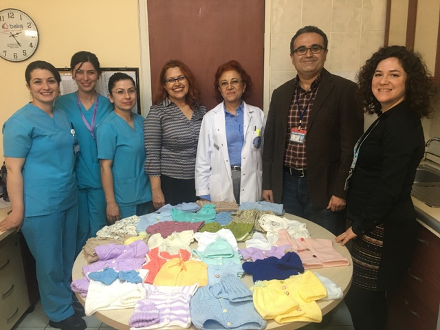 Adnan Menderes Üniversitesi Uygulama ve AraÅŸtırma Hastanesinin yoÄŸun bakım ünitesinde tedavi gören minik bebekler için, HemÅŸirelik Fakültesi Çocuk SaÄŸlığı ve Hastalıkları HemÅŸireliÄŸi Anabilim Dalı tarafından gönüllülere yelek, baÅŸlık ve patik ördürülmüÅŸtür. Bu el emeÄŸi göz nuru ürünler için HemÅŸirelik Fakültesi öÄŸrencileri de katkı vermiÅŸlerdir. Örülen yelek, baÅŸlık ve patikler 04.04.2018 tarihinde “yenidoÄŸan yoÄŸun bakım” sorumlusu hemÅŸirelere ve doktorlara teslim edilmiÅŸtir. Örgü kıyafetleri teslim alan saÄŸlık personeli, HemÅŸirelik Fakültesi Çocuk SaÄŸlığı Ve Hastalıkları HemÅŸireliÄŸi Anabilim Dalı tarafından ihtiyaç sahibi olan çocuklar için organize edilen bu yardım kampanyasına iliÅŸkin memnuniyetlerini ifade etmiÅŸlerdir.
