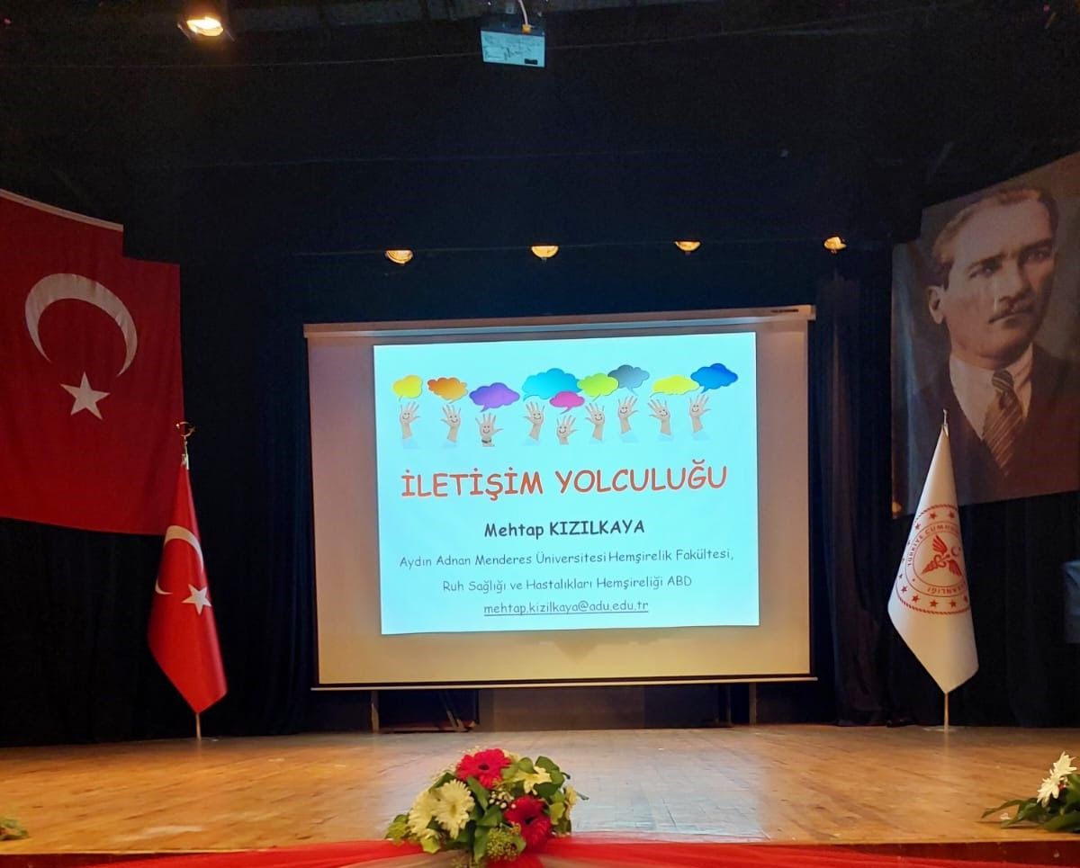 Fakültemiz Ruh Sağlığı ve Hastalıkları Hemşireliği Anabilim Dalı’ndan Dr. Öğr. Üyesi Mehtap KIZILKAYA tarafından 06 Kasım 2023 tarihinde saat 16.00-19.00 arasında Aydın Nazilli Devlet Hastanesi’nde çalışan 350 sağlık personeline “İletişim Yolculuğu” başlıklı Kişilerarası İletişim, Öfke ve Stres Yönetimi içerikli eğitim verildi. Eğitime ilgi yoğundu. Katılımcılardan alınan geri bildirimler sonrası Nazilli Devlet Hastanesi Başhekimi Uzm. Dr. Necati AKKAYA’nın hocamıza çiçek takdim etmesi ile program sona erdi.