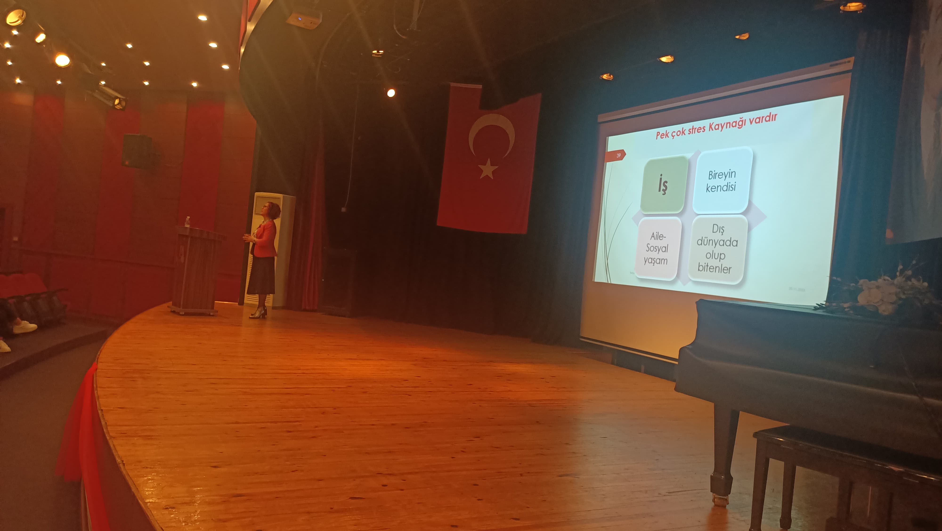 Fakültemiz Ruh Sağlığı ve Hastalıkları Hemşireliği Anabilim Dalı’ndan Doç. Dr. Hatice ÖNER tarafından 20 Kasım 2023 tarihinde saat 16.00-19.00 arasında Aydın Nazilli Devlet Hastanesi’nde çalışan 350 sağlık personeline “Sağlıklı İletişim ve Stres Yönetimi” başlıklı Kişilerarası İletişim, Stres Yönetimi ve Problem Çözme içerikli eğitim verilmiştir. Eğitime katılım yüksekti. Eğitim bitiminde katılımcıların geri bildirimleri alındıktan sonra Nazilli Devlet Hastanesi Başhekimi Uzm. Dr. Necati AKKAYA’nın hocamıza çiçek takdim etmesi ile program sona ermiştir.