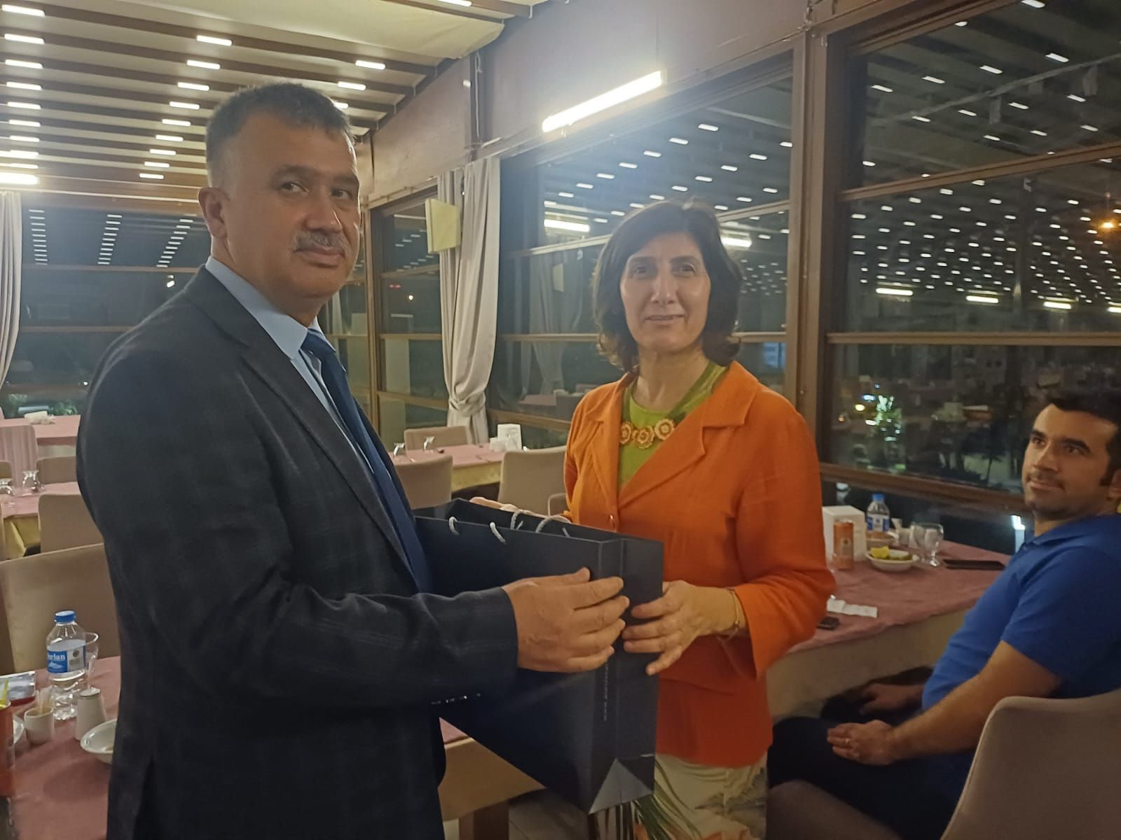 Yaklaşık bir buçuk yıldır HemÅŸirelik Fakültesi Fakülte Sekreter Vekili olarak görev yapan İbrahim ÖZTÜRK'ün Üniversitemiz Buharkent Meslek Yüksekokulu'na atanması nedeniyle 25 Eylül 2024 ÇarÅŸamba günü HemÅŸirelik Fakültesi adına veda yemeÄŸi düzenlendi. Fakülte Dekan V. Prof. Dr. Hilmiye AKSU, Dekan Yardımcısı Prof. Dr. Hüsniye ÇALIÅžIR, Fakülte Sekreteri Göksel BARAN, akademik ve idari personelimizin katılımıyla gerçekleÅŸen yemekte Fakülte Dekan V. Prof. Dr Hilmiye AKSU, fakültemize verdiÄŸi emekler için İbrahim ÖZTÜRK’e teÅŸekkür ederek hediye takdiminde bulundu.