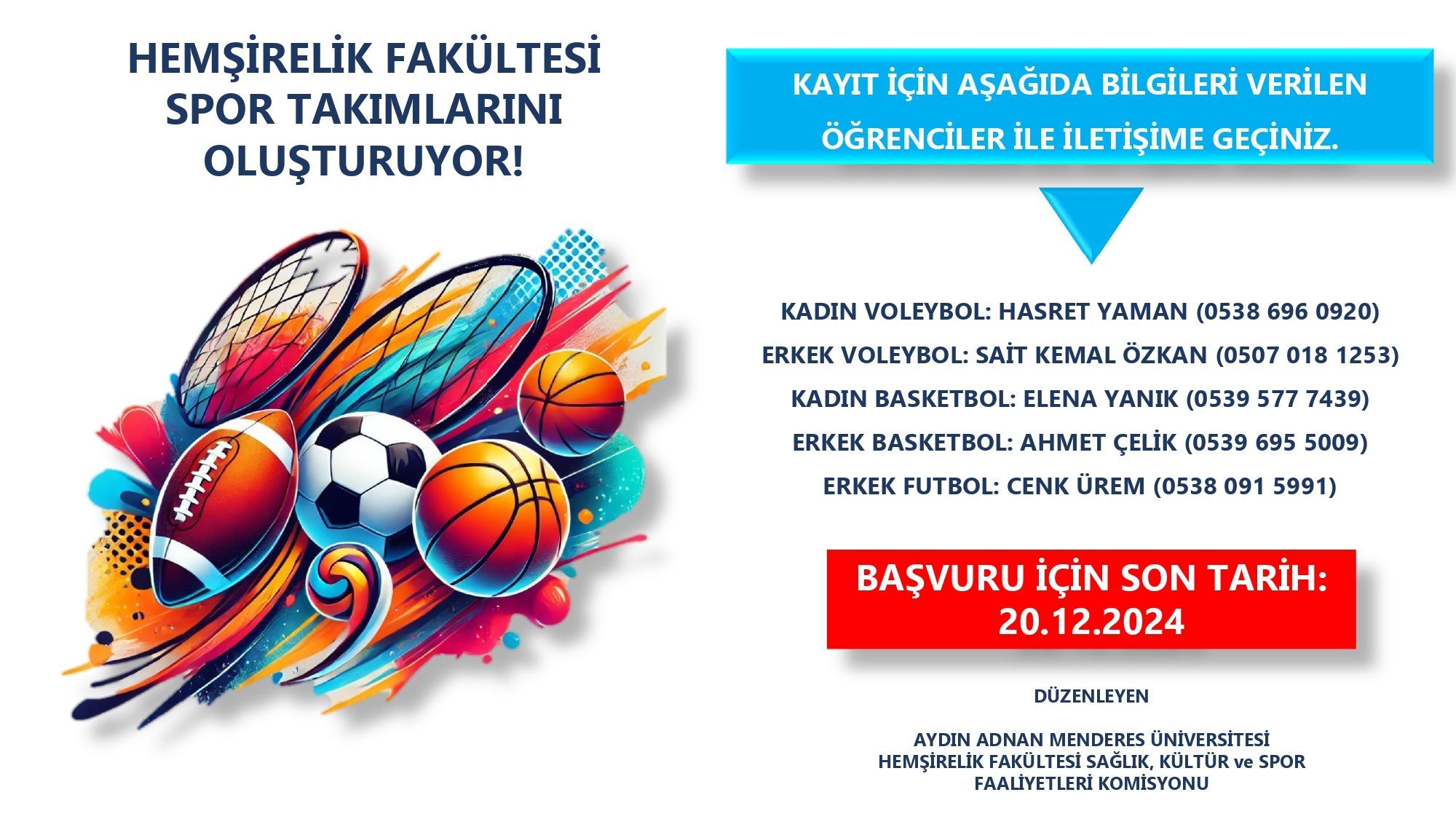 Hemşirelik Fakültesi Spor Takımlarını Oluşturuyor. Kayıt İçin İletişime Geçiniz.