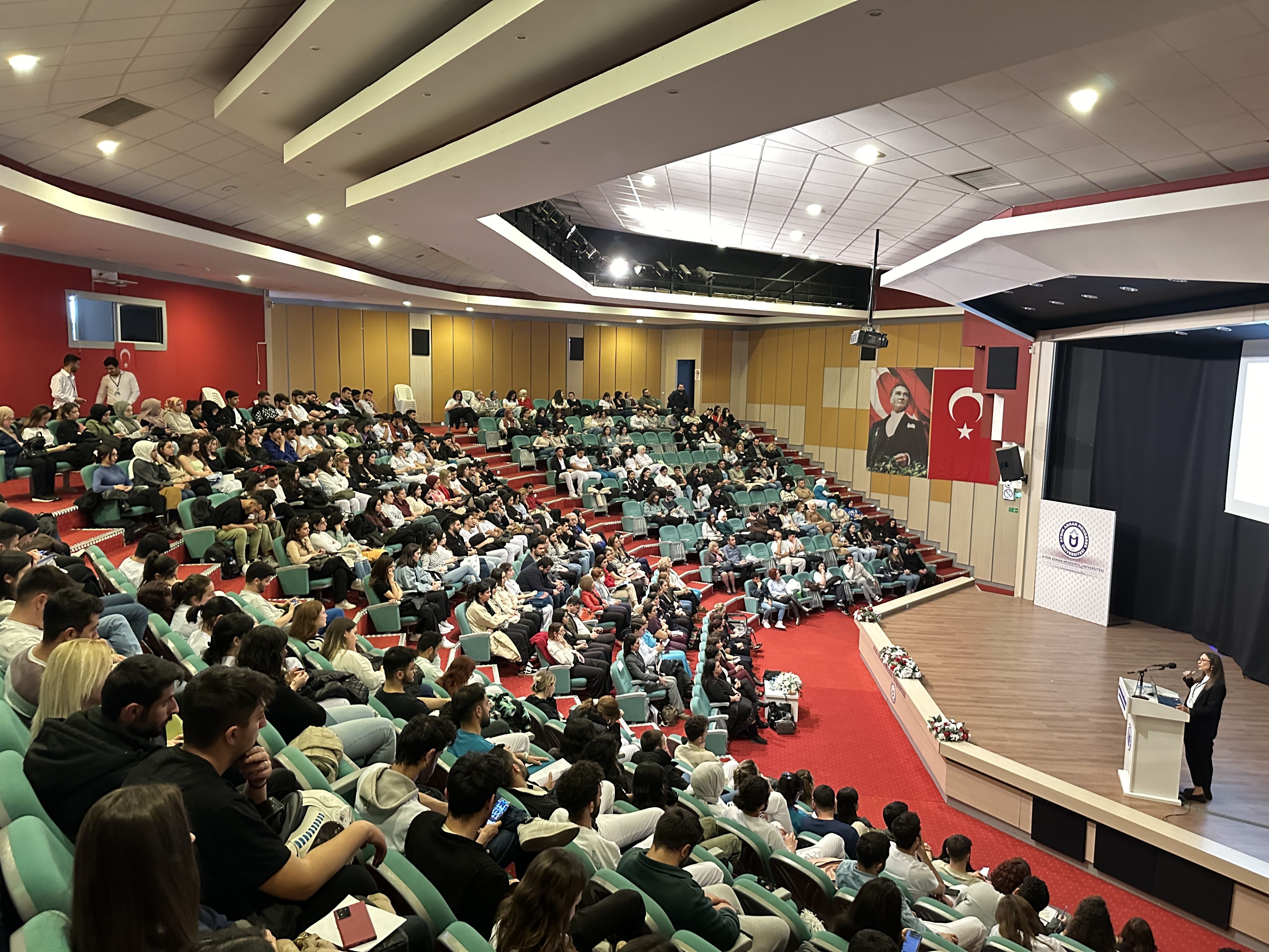 Program Fakülte Tanıtım ve Kariyer Geliştirme Komisyonu Başkanı Dr. Öğr. Üyesi Mehtap KIZILKAYA’nın açılış konuşması ile başladı. Program, Fakülte Dekan V. Prof. Dr. Hilmiye AKSU’nun konuşmasının ardından İzmir Acıbadem Hastanesi İnsan Kaynakları Sorumlusu Müge YAVUZ FİDAN ve Sorumlu Hemşire Filiz BEKİROĞLU ile Özel Ege Liva Hastanesi Başhemşiresi Gülsüm YILGIN’ın hastanelerinin çalışma koşulları ve hemşirelik hizmetleri hakkında bilgilendirme sunumları ile devam etti.