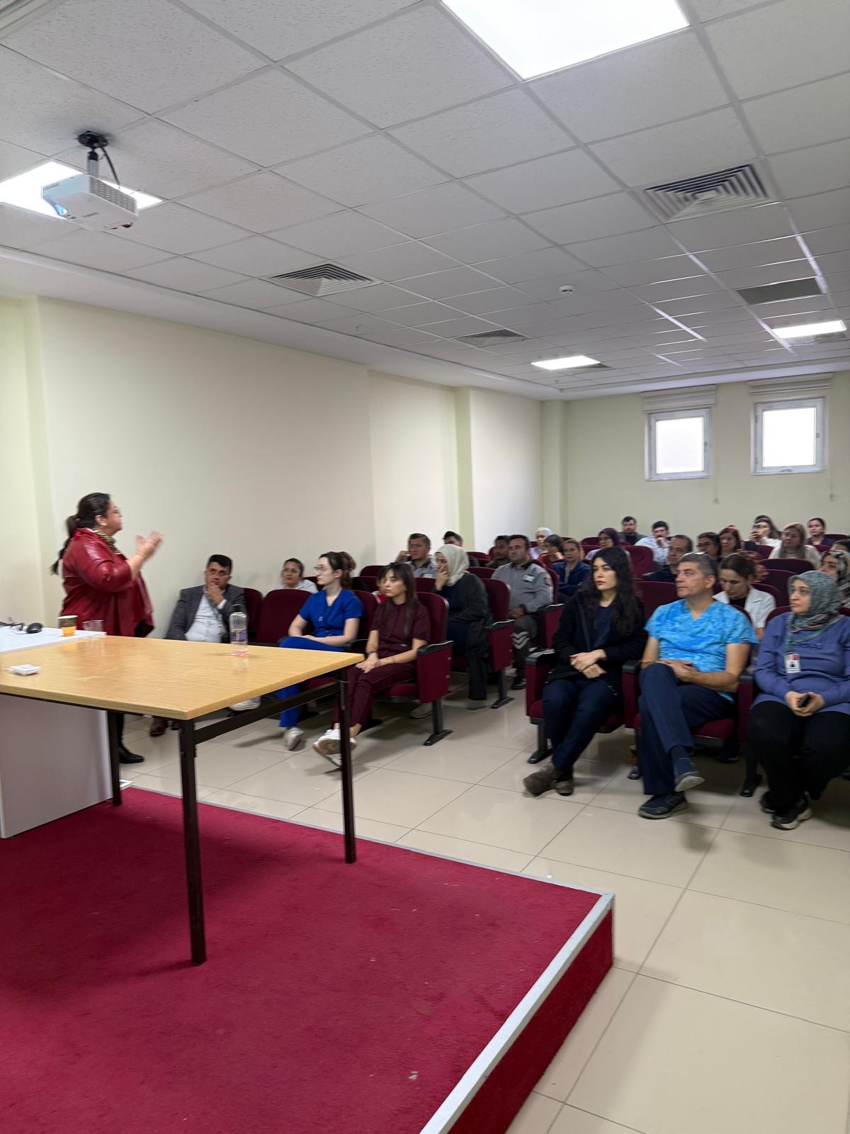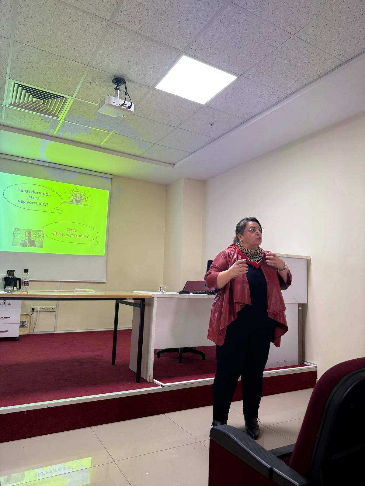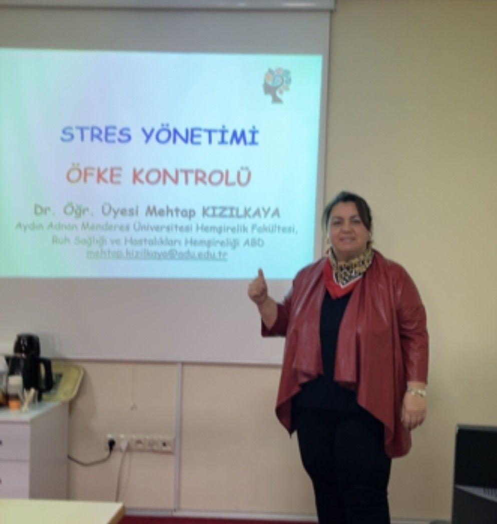 Fakültemiz Ruh Sağlığı ve Hastalıkları Hemşireliği Ana bilim dalı öğretim üyesi Dr. Öğr. Üyesi Mehtap KIZILKAYA tarafından Aydın Ağız ve Diş Sağlığı Merkezi’nde çalışan sağlık çalışanlarına yönelik 16 Aralık 2025 tarihinde Aydın Ağız ve Diş Sağlığı konferans salonunda “Stres Yönetimi ve Öfke Kontrolü” başlıklı hizmet içi eğitim gerçekleştirildi. Isınma egzersizi ile başlayan eğitim katılımcılardan alınan geri bildirimler ile sona erdi.