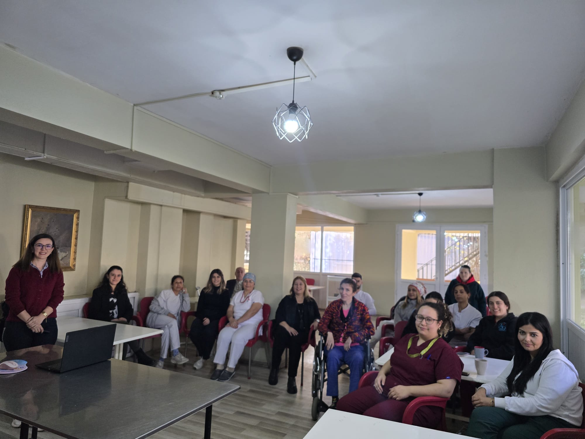 HemÅŸirelik Fakültesi Halk SaÄŸlığı HemÅŸireliÄŸi Anabilim Dalı öÄŸretim üyesi Doç. Dr. Belgin YILDIRIM ile yüksek lisans öÄŸrencisi Ümmügül ESEN IÅžIKLAR tarafından 03.12.2025 tarihinde Aydın ilindeki Candan Huzurevi YaÅŸlı Bakım Merkezinde eÄŸitim verilmiÅŸtir. EÄŸitimin konusu Afetler ve Afetlere Yaklaşımdır. Huzurevinde yaÅŸayan yaÅŸlılara ve çalışanlarına verilen eÄŸitim heyecanla karşılanmış ve ilgiyle dinlenmiÅŸtir. Konu ile ilgili olarak sorulara da yanıtlar verilmiÅŸtir. EÄŸitimlerin devamını talep etmiÅŸlerdir. Sunulan konular doÄŸrultusunda huzurevinde yaÅŸayan yaÅŸlılara ve çalışanlara katkı saÄŸlamak hedeflenmiÅŸtir.