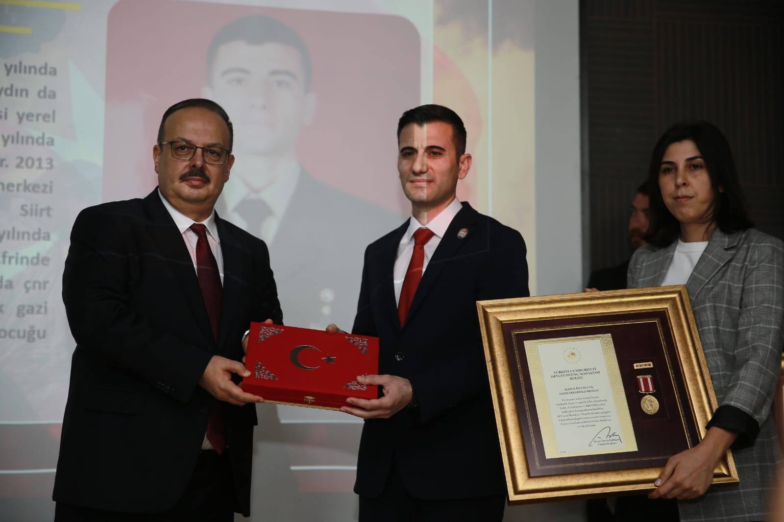 Aydın ValiliÄŸi tarafından Aile ve Sosyal Hizmetler İl MüdürlüÄŸünde düzenlenen Devlet Övünç Madalyası ve Beratı Tevcih Töreni, Aydın Valisi Yakup Canbolat, Üniversitemiz Rektörü Prof. Dr. Bülent Kent, protokol üyeleri, ÅŸehit yakınları ve gazilerin katılımıyla gerçekleÅŸtirildi.