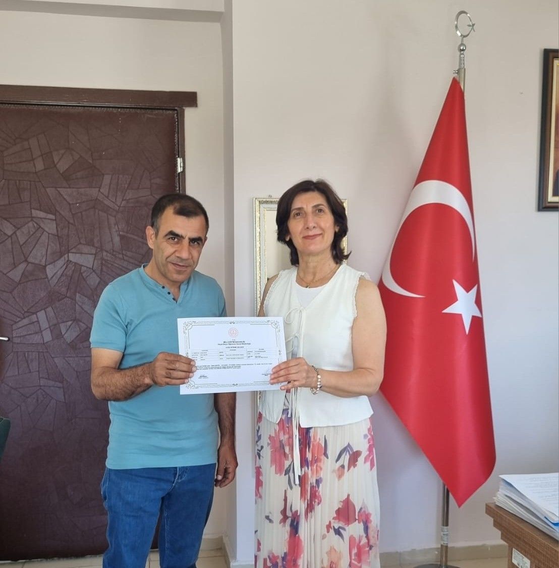 HemÅŸirelik Fakültesi Dekanımız Prof. Dr. Hilmiye AKSU "Hayat Boyu ÖÄŸrenme Genel MüdürlüÄŸü" tarafından verilen Kurs Bitirme Sertifikasından ötürü personelimiz Sefer BARTİK'i tebrik ederek, baÅŸarılarının devamını diledi.