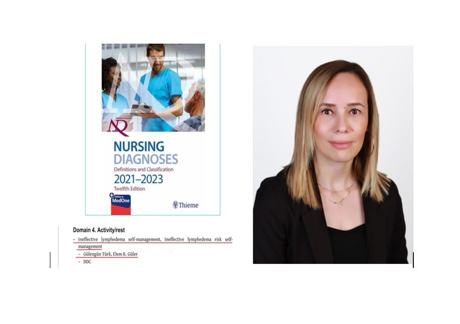 Hemşirelik Fakültesi Hemşirelik Esasları Anabilim Dalı Başkanı Öğretim Üyemiz Prof. Dr. Gülengün TÜRK'ün İzmir Demokrasi Üniversitesi Sağlık Bilimleri Fakültesi Öğretim Üyesi Dr. Öğr. Üyesi Elem KOCAÇAL ile işbirliği sonucunda Uluslararası bir tanı sınıflama sistemi olan NANDA-International’a önerdikleri “Ineffective Lymphedema Self-Management” ve “Ineffective Lymphedema Risk Self-Management” hemşirelik tanıları kabul edilmiş olup NANDA-International Nursing Diagnoses Definitions and Classification 2021-2023“ kitabında yayınlanmıştır. Uluslararası yayınlanan kitapta ülkemizden sadece üç akademisyenin hemşirelik tanıları yer almaktadır. Kabul edilen tanılarla hemşirelik taksonomisine önemli katkı sağlanmıştır