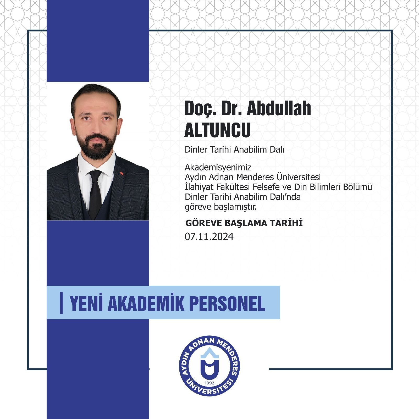 Yeni Akademik Personel - Doç. Dr. Abdullah ALTUNCU