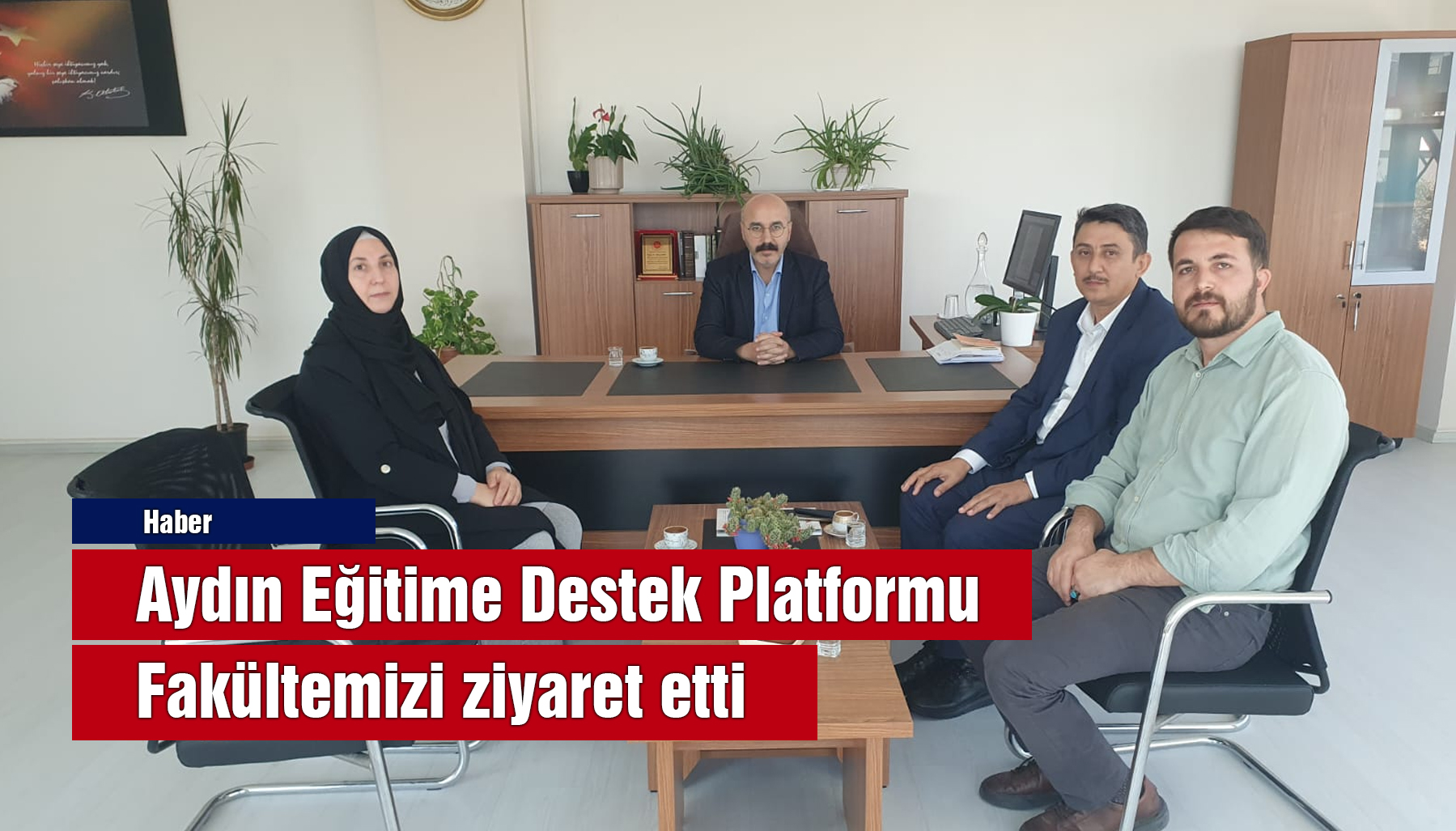 Aydın EÄŸitime Destek Platformu Dönem BaÅŸkanlarıDilek Akıcı ve Ali AktaÅŸ Fakültemize hayırlı olsun ziyaretinde bulundu. Ziyarete gelen Aydın EÄŸitime Destek Platformu Dönem BaÅŸkanlarına dekan yardımcılarımız Dr. ÖÄŸr. Üyesi Yakup Kaya ve Dr. ÖÄŸr. Üyesi Muhammet Çol, Fakültemiz hakkında bilgi verdiler.