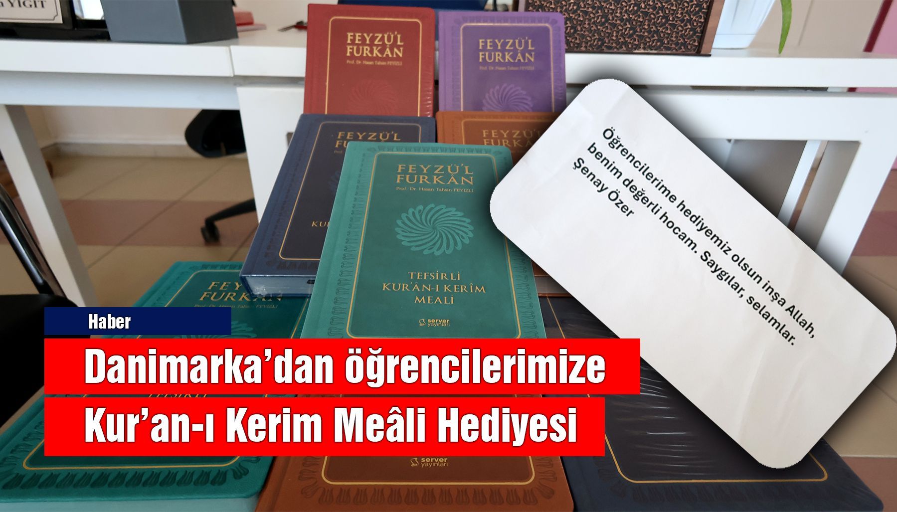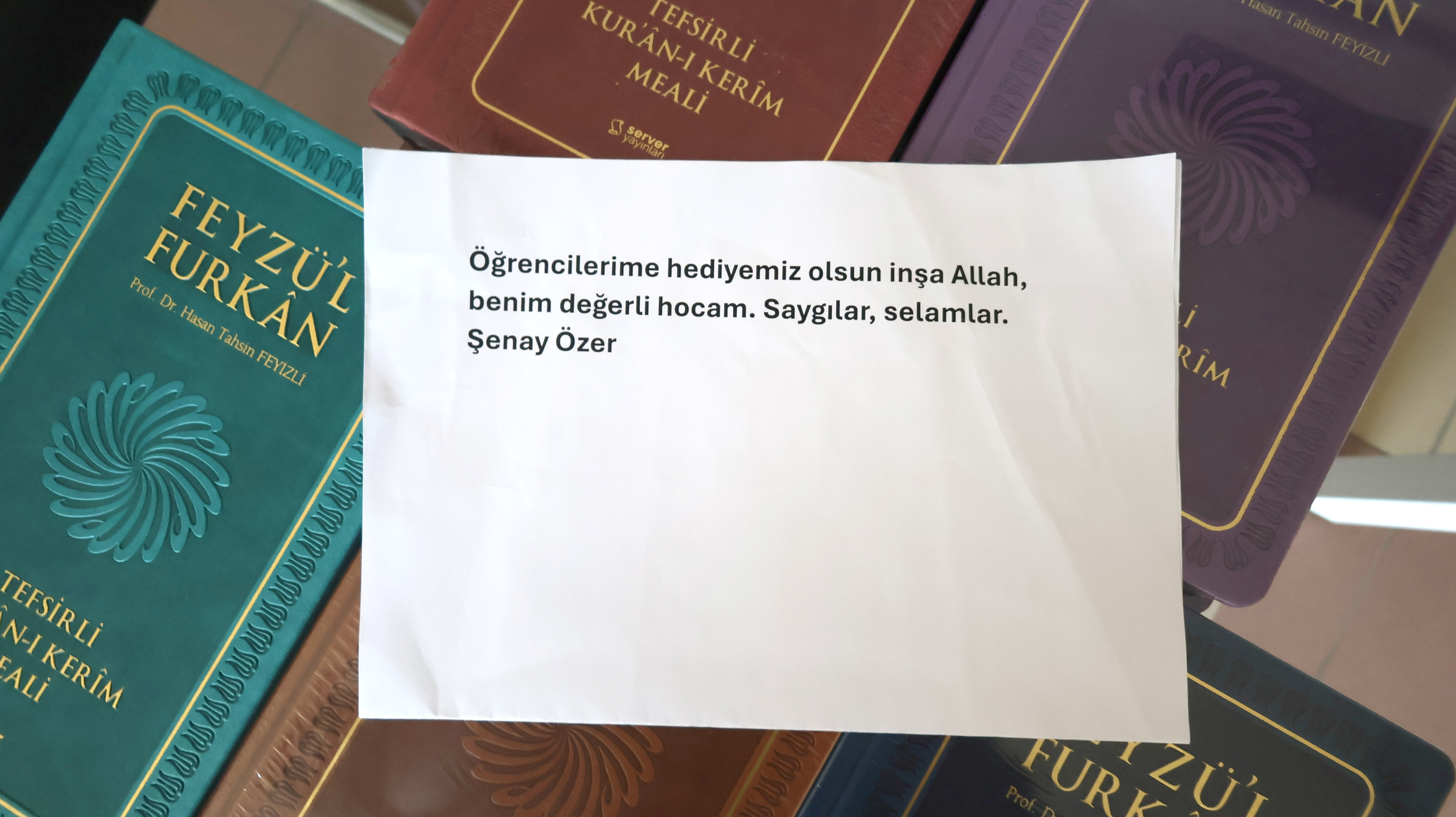 Uzun yıllardır Danimarka'da yaşayan Aydınlı gurbetçi Şenay Özer hanımefendi Fakültemizde Pazartesi günü eğitime başlayacak olan ilk öğrencilerimize dağıtılmak üzere 50 adet Kur'an-ı Kerim Meâli hediye etti. Aydınlı gurbetçi Şenay Özer hanımefendiye yapmış olduğu bu nazik davranıştan dolayı teşekkür ediyoruz.