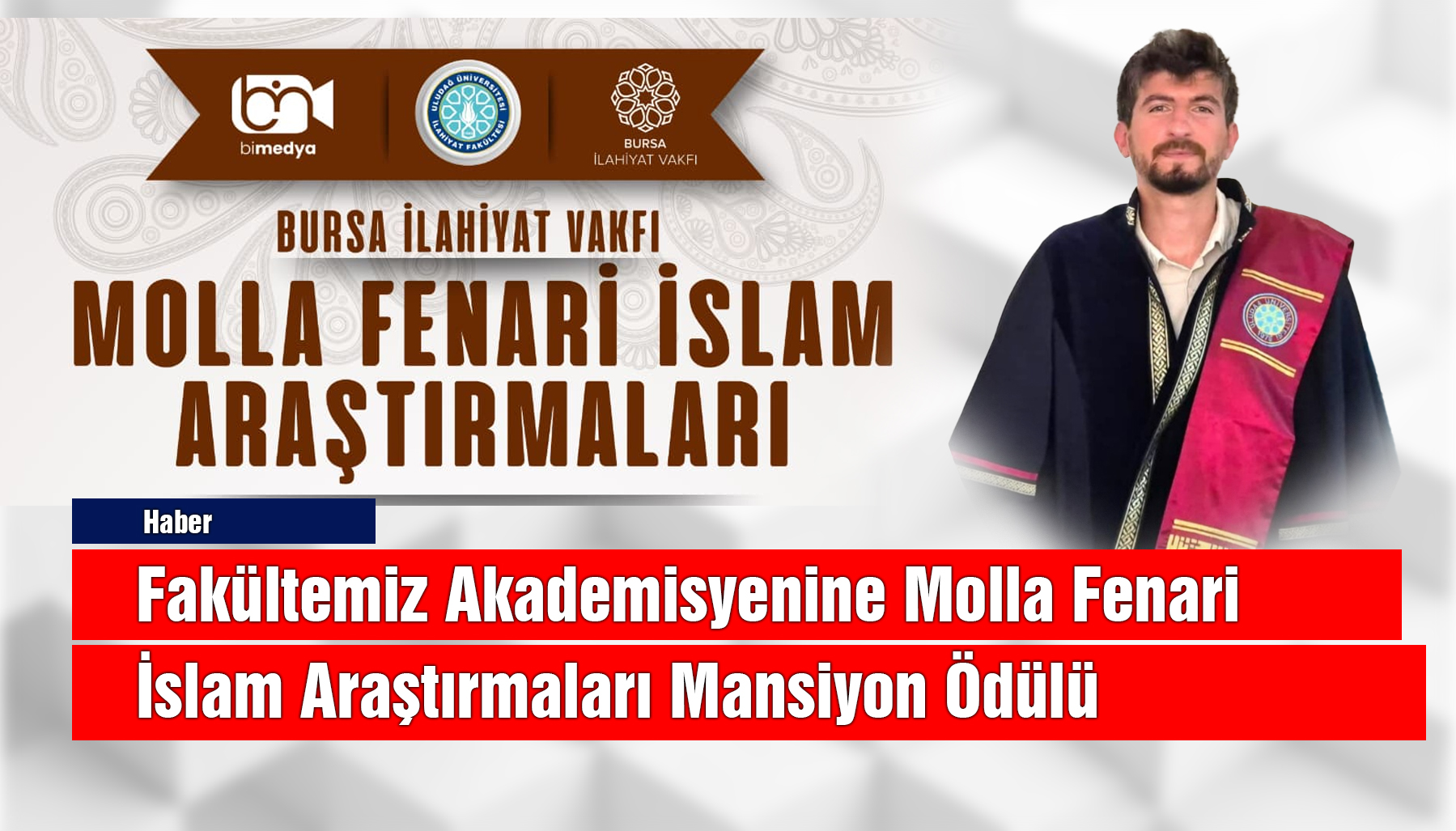 Bursa Uludağ Üniversitesi İlahiyat Fakültesi ile Bursa İlahiyat Vakfı tarafından düzenlenen Molla Fenari İslam Araştırmaları ödül programında fakültemiz akademisyenlerinden Araştırma Görevlisi Dr. Muhammed Usame Karadeniz önemli bir başarıya imza attı.