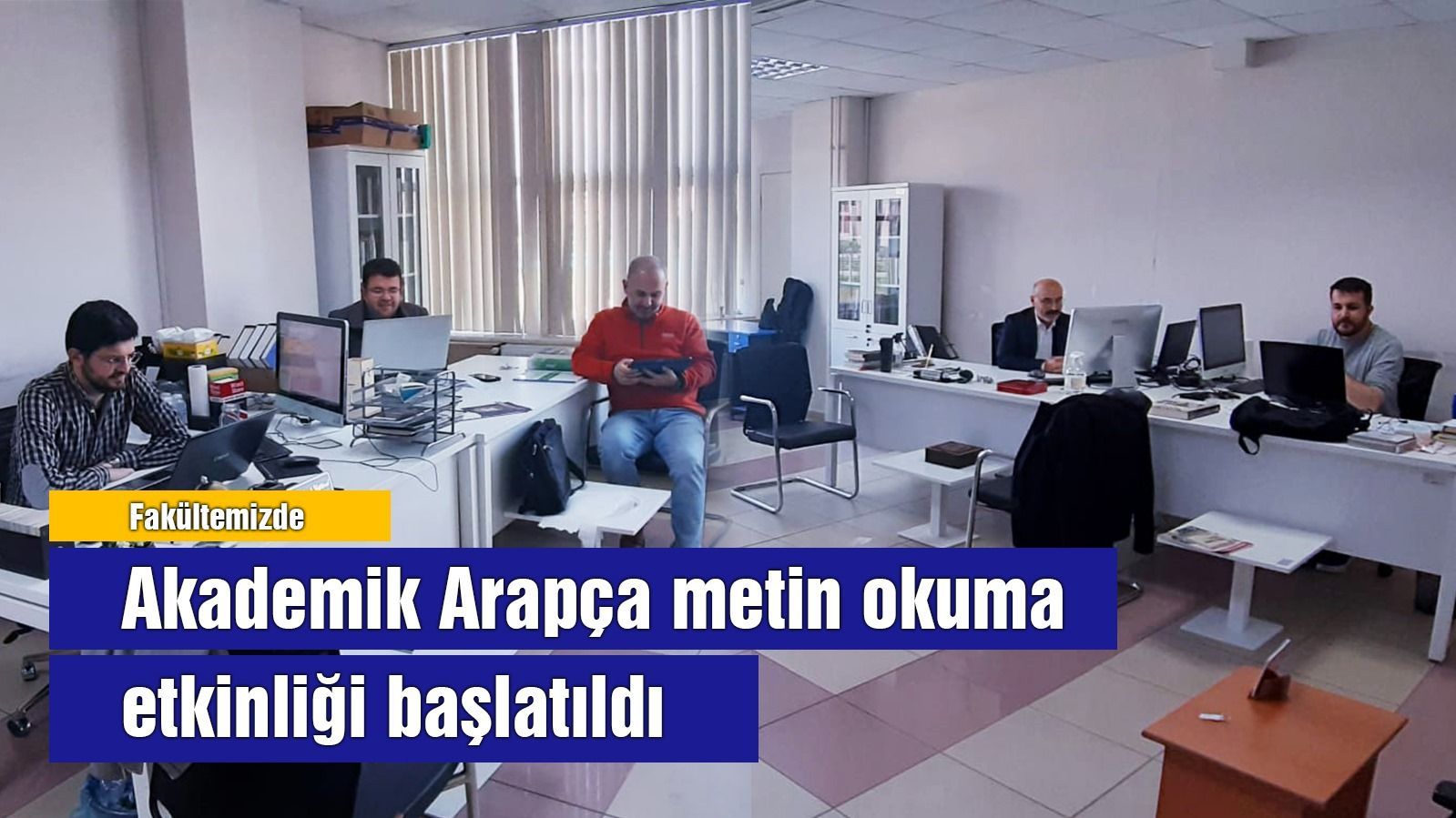 ÖÄŸretim üyesi arkadaÅŸlarımız kendi aralarında "Akademik Arapça Metin Okumaları" etkinliÄŸi baÅŸlattılar. Akademik Arapçaya yönelik yapılan etkinliÄŸe Dekan Yardımcımız Dr. ÖÄŸr. Üyesi Yakup Kaya’da katıldı.