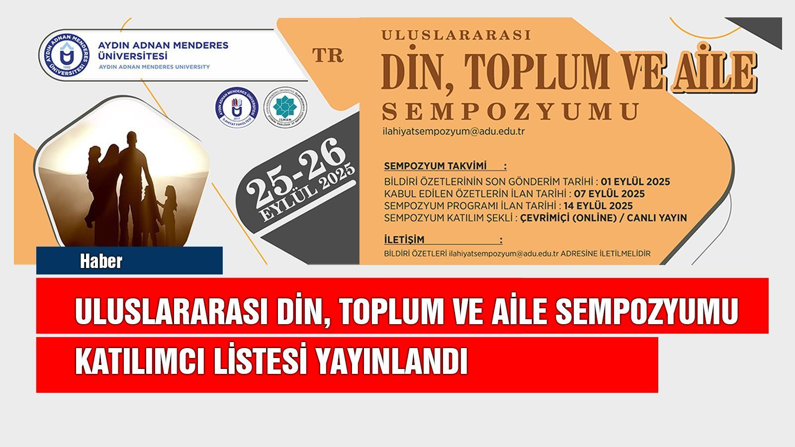 Aydın Adnan Menderes Üniversitesi İlahiyat Fakültesi ile İslami İlimler ve Medeniyet Araştırmaları Merkezi (İSMAM) iş birliğinde düzenlenecek olan Uluslararası Din, Toplum ve Aile Sempozyumu, 25-26 Eylül 2025 tarihlerinde çevrim içi olarak gerçekleştirilecek. Sempozyum, farklı disiplinlerden akademisyenleri bir araya getirerek dinî, toplumsal ve ailevi yapılar arasındaki etkileşimi çok boyutlu bir şekilde ele almayı hedefliyor.