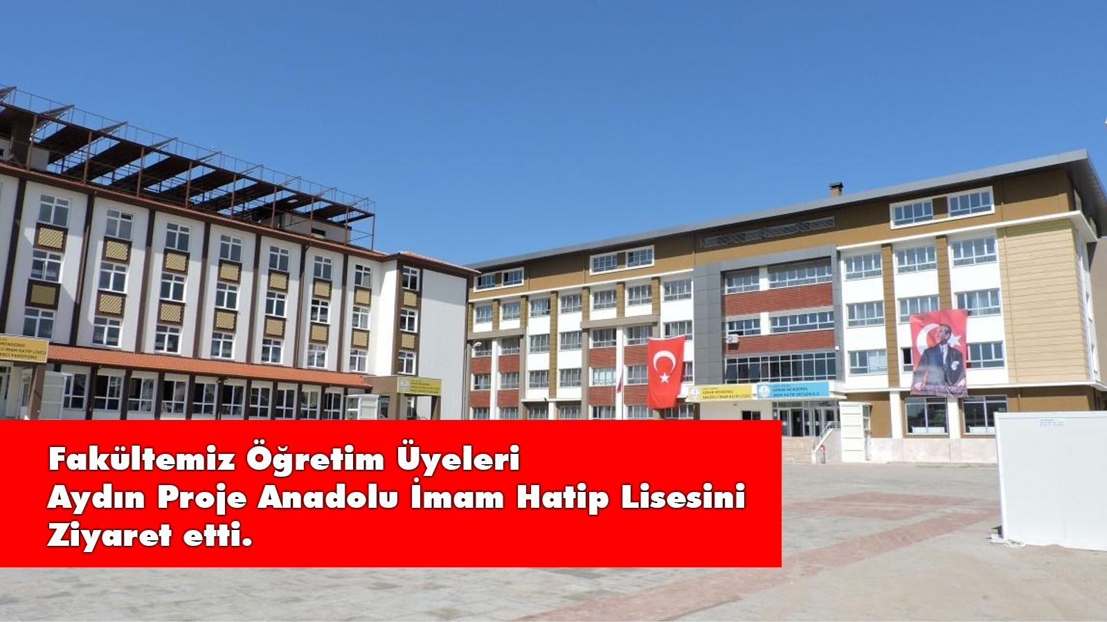 Fakültemiz Dekan Yardımcısı Dr. ÖÄŸr. Üyesi Yakup Kaya ve öÄŸretim üyeleri Aydın Proje Anadolu İmam Hatip Lisesini ziyaret ederek Müdür Bünyamin Öztürk ile görüÅŸ alışveriÅŸinde bulundular. Akademik kadroya yeni alınan hocalarımız ile aktif hale gelen Fakültemiz hakkında bilgiler veren Dekan Yardımcısı Dr. ÖÄŸr. Üyesi Yakup Kaya; ilahiyat fakültelerinin öÄŸrenci kaynaklarından olan İmam Hatip Liselerinin önemine vurgu yaptı.