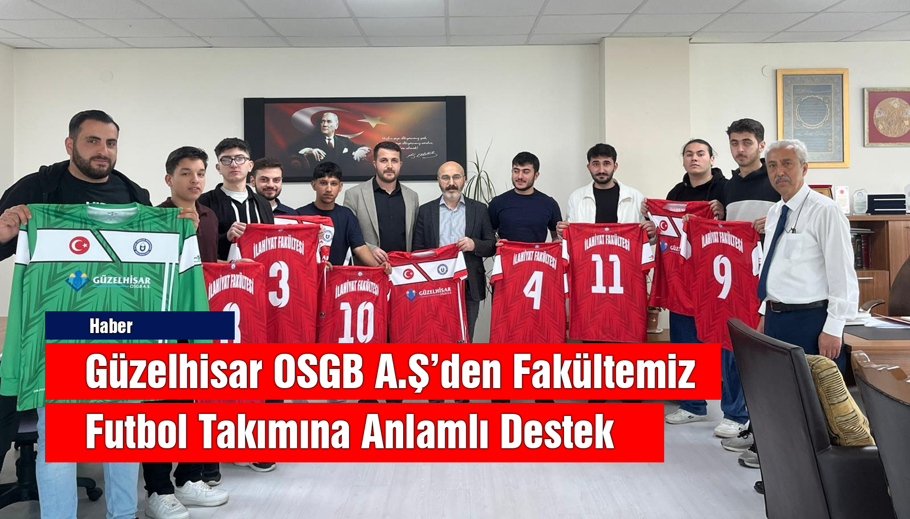 Aydın Adnan Menderes Üniversitesi İlahiyat Fakültesi futbol takımı, özel sektörden aldığı destekle güçlenmeye devam ediyor. İş sağlığı ve güvenliği alanında faaliyet gösteren Güzelhisar OSGB A.Ş., fakülte futbol takımına sponsor olarak takımın forma ihtiyacını karşıladı.