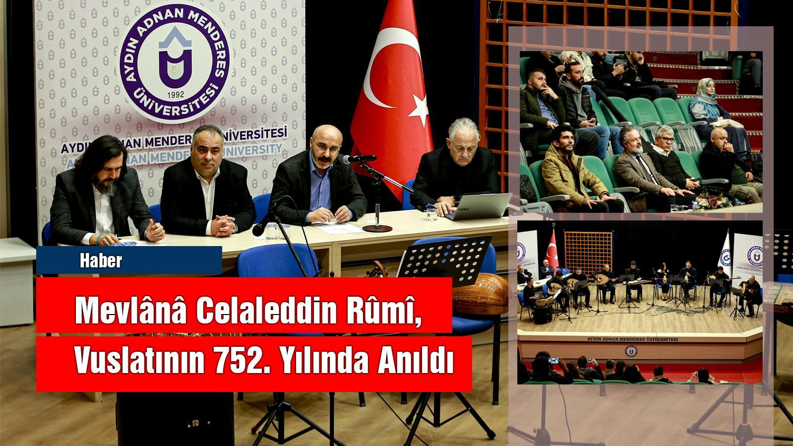 Üniversitemiz tarafından, Mevlânâ Celaleddin Rûmî’nin vuslatının 752. yılı dolayısıyla düzenlenen anma programı, 16 Aralık 2025 tarihinde Atatürk Kongre Merkezi İsa Bey Salonu’nda gerçekleştirildi.