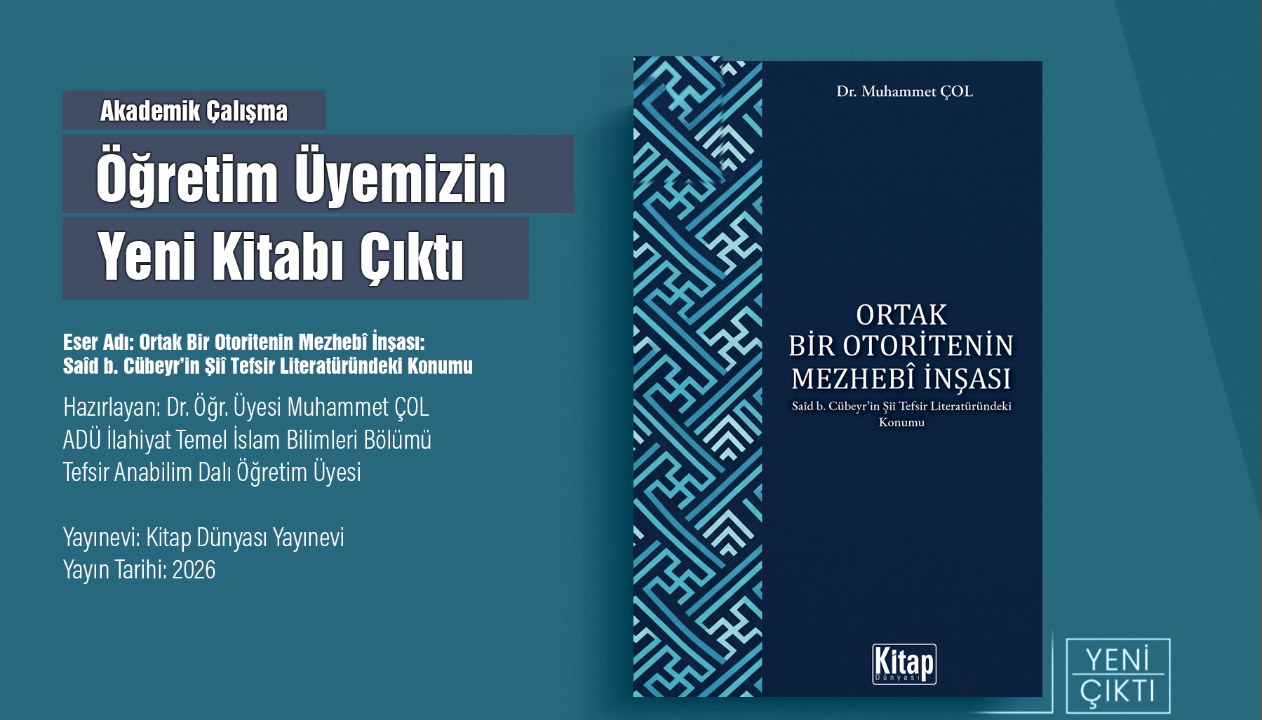 Aydın Adnan Menderes Üniversitesi İlahiyat Fakültesi öÄŸretim üyelerimizden Dr. Muhammet ÇOL’un yeni kitabı yayımlandı.