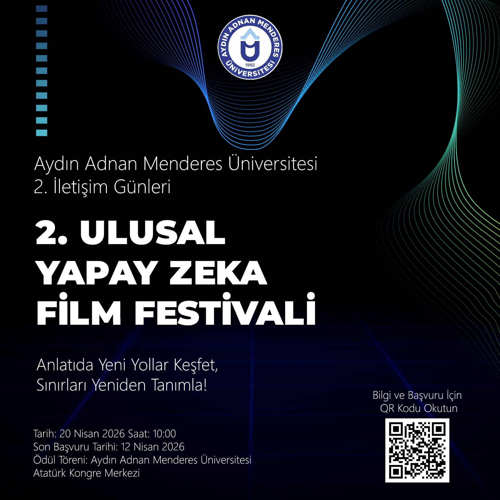 Aydın Adnan Menderes Üniversitesi İletişim Fakültesi tarafından düzenlenen 2. Ulusal Yapay Zeka Kısa Film Festivali, yapay zeka araçları kullanılarak geliştirilen özgün anlatıları bir araya getiriyor.