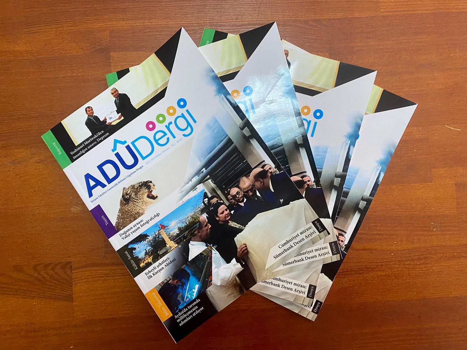 ADÜ Matbaasında basılan ADÜ Dergi’nin her sayısı dönem sonlarında olacak şekilde yılda iki sayı yayınlanmakta. ADÜ Dergiyi online okumak için gzt.adu.edu.tr internet haber sitesini ve sosyal medya platformlarını takip edebilirsiniz.