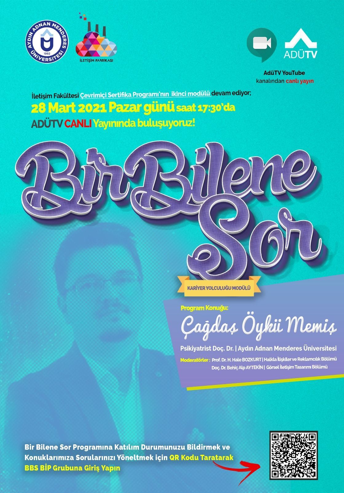 28 Mart Pazar günü saat 17.30’ da Psikiyatrist Doç. Dr. ÇaÄŸdaÅŸ Öykü MemiÅŸ canlı yayında! ADÜTV Canlı Yayın Linki: